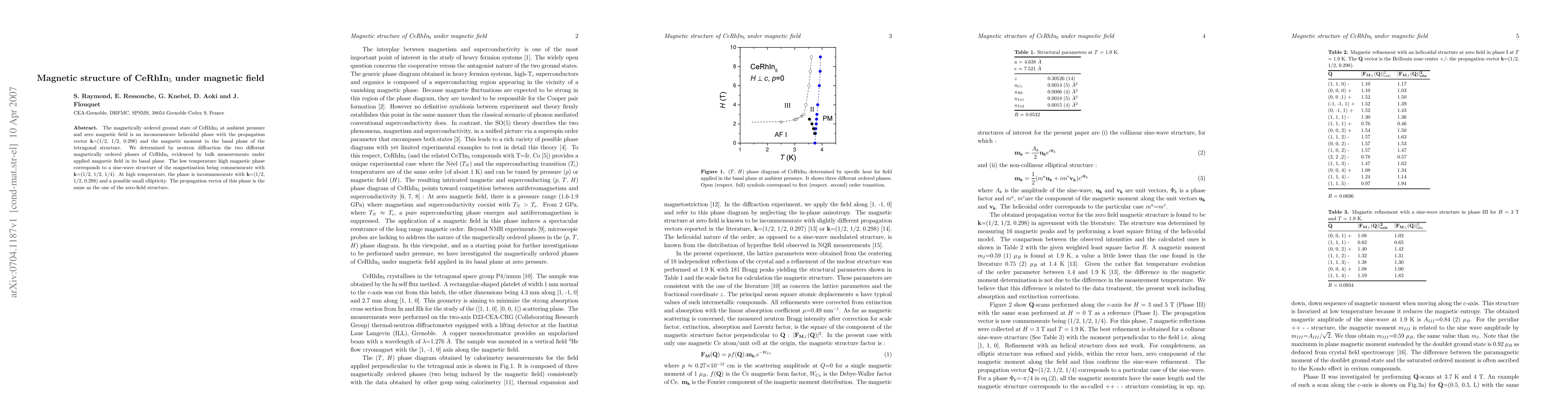 This study investigates the magnetic structure of CeRhIn$_{5}$ under applied magnetic fields, revealing two distinct ordered phases. At low temperatures, a high magnetic field induces a commensurate sine-wave magnetization structure, while at high temperatures, an incommensurate phase with a propagation vector similar to the zero-field state is observed.