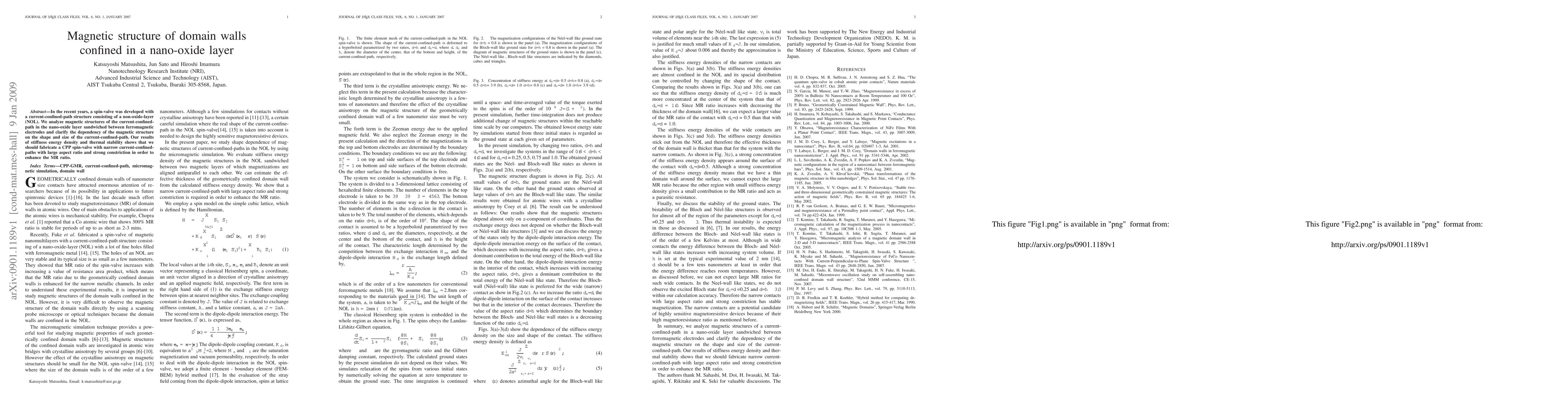 This study analyzes magnetic structures in current-confined paths within nano-oxide layers in spin-valves, finding that narrow paths with high aspect ratio and strong constriction enhance the MR ratio, aiding in the development of more efficient spin-valve devices.