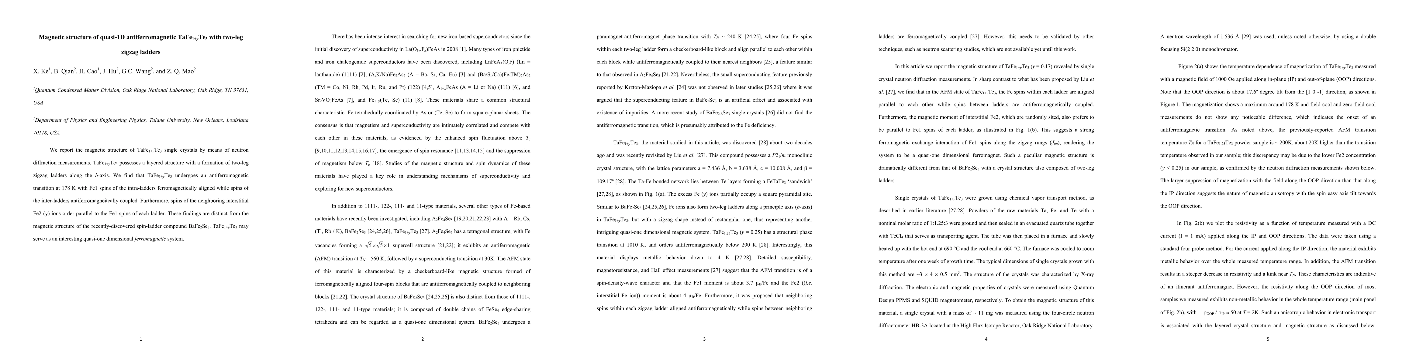 TaFe1+yTe3 exhibits an antiferromagnetic transition at 178 K with ferromagnetically aligned Fe1 spins in zigzag ladders, unlike the spin-ladder compound BaFe2Se3.