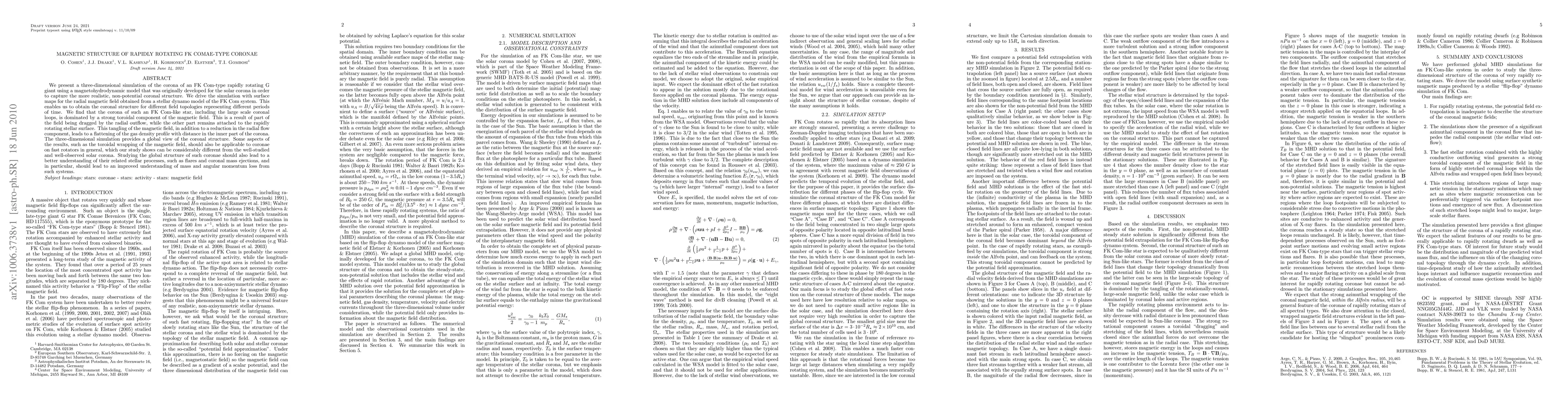 A 3D simulation of an FK Com-type star's corona shows a strong toroidal magnetic field component, different from the solar corona, with implications for understanding stellar processes like flares and mass loss.