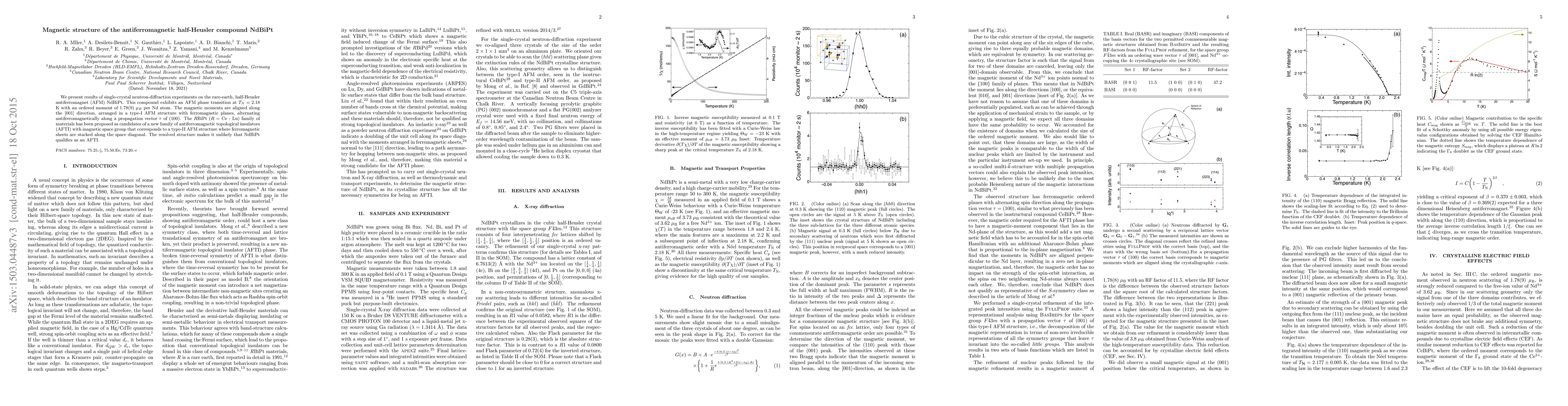 We present results of single crystal neutron diffraction experiments on the rare-earth, half-Heusler antiferromagnet (AFM) NdBiPt. This compound exhibits an AFM phase transition at $T_{\mathrm N}=2.18$~K with an ordered moment of $1.78(9)$~$\mu_{\mathrm B}$ per Nd atom. The magnetic moments are aligned along the $[001]$-direction, arranged in a type-I AFM structure with ferromagnetic planes, alternating antiferromagnetically along a propagation vector $\tau$ of $(100)$. The $R$BiPt ($R$= Ce-Lu) family of materials has been proposed as candidates of a new family of antiferromagnetic topological insulators (AFTI) with magnetic space group that corresponds to a type-II AFM structure where ferromagnetic sheets are stacked along the space diagonal. The resolved structure makes it unlikely, that NdBiPt qualifies as an AFTI.