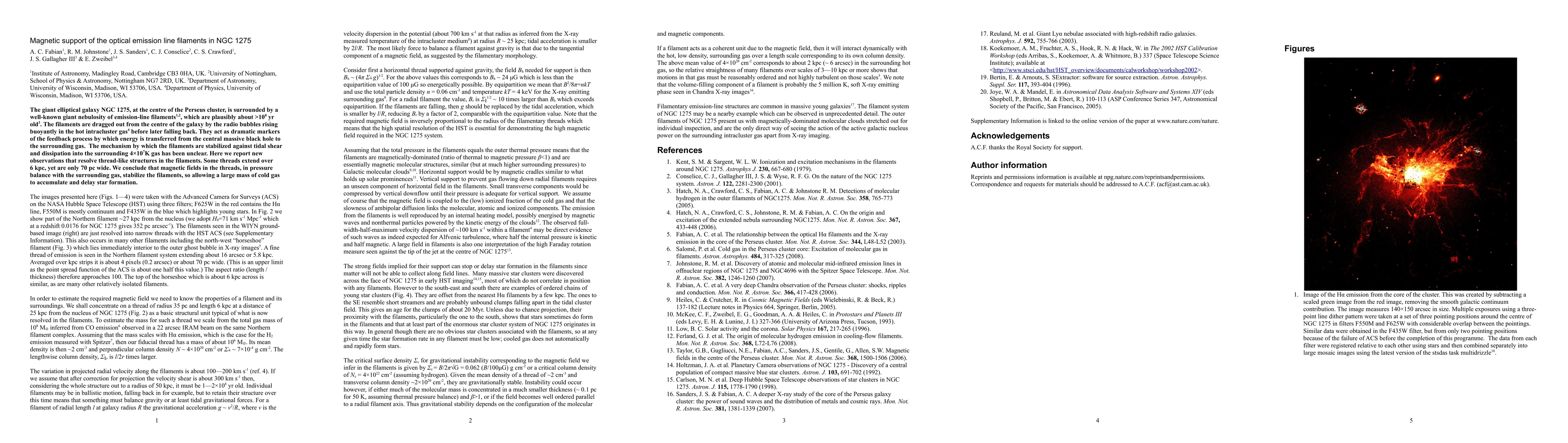 This paper investigates the stabilization mechanism of emission-line filaments in NGC 1275, revealing that magnetic fields within thread-like structures maintain the filaments against tidal forces, allowing cold gas accumulation and delaying star formation.