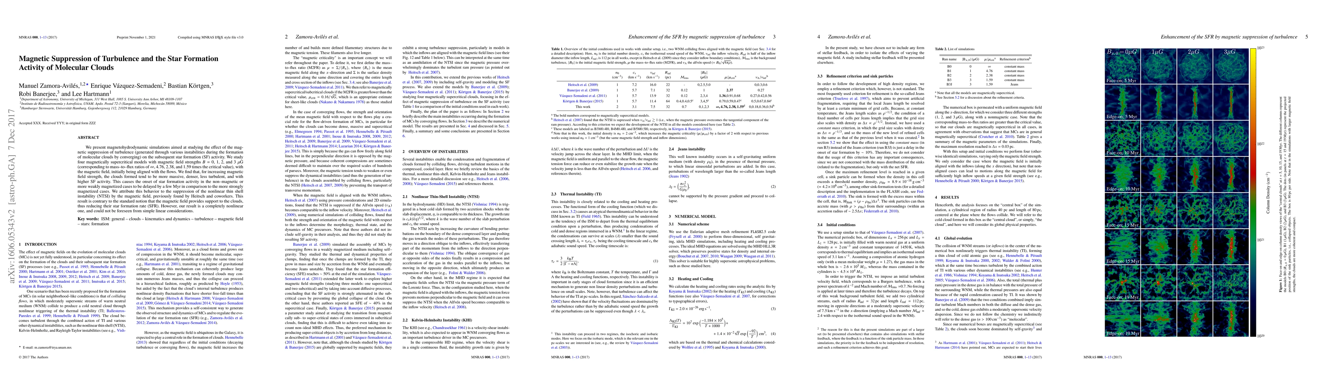 We present magnetohydrodynamic simulations aimed at studying the effect of the magnetic suppression of turbulence (generated through various instabilities during the formation of molecular clouds by converging) on the subsequent star formation (SF) activity. We study four magnetically supercritical models with magnetic field strengths $B= 0$, 1, 2, and 3 $\mu$G (corresponding to mass--to--flux ratios of $\infty$, 4.76, 2.38, and 1.59 times the critical value), with the magnetic field, initially being aligned with the flows. We find that, for increasing magnetic field strength, the clouds formed tend to be more massive, denser, less turbulent, and with higher SF activity. This causes the onset of star formation activity in the non--magnetic or more weakly magnetized cases to be delayed by a few Myr in comparison to the more strongly magnetized cases. We attribute this behavior to the suppression of the nonlinear thin shell instability (NTSI) by the magnetic field, previously found by Heitsch and coworkers. This result is contrary to the standard notion that the magnetic field provides support to the clouds, thus reducing their star formation rate (SFR). However, our result is a completely nonlinear one, and could not be foreseen from simple linear considerations.