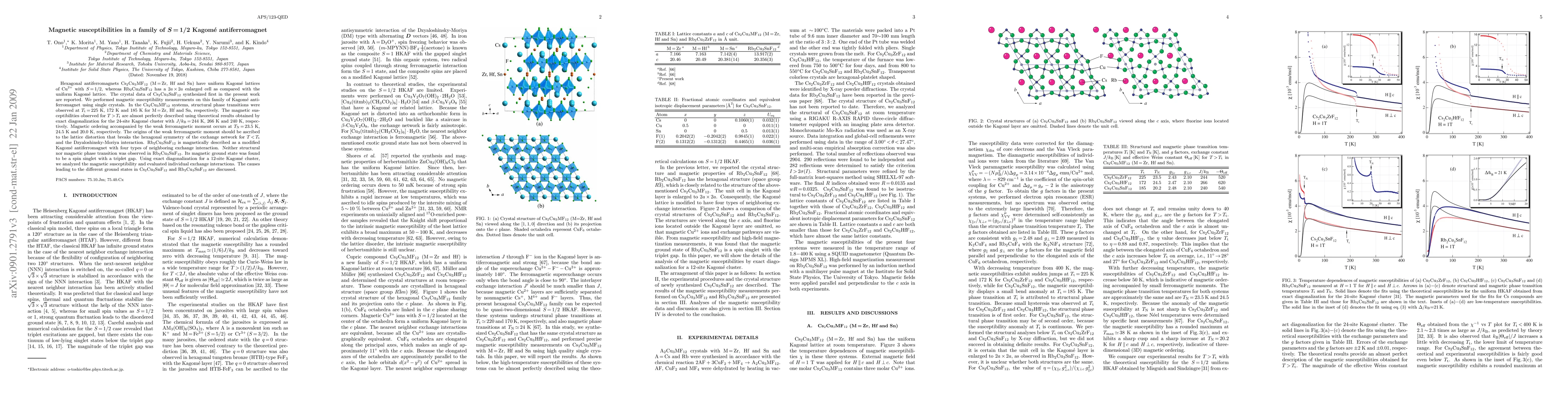 This study investigates magnetic susceptibilities in a family of S=1/2 Kagome antiferromagnets, revealing structural phase transitions and magnetic ordering in Cs$_2$Cu$_3$MF$_{12}$ (M = Zr, Hf, Sn) with weak ferromagnetic moments due to lattice distortions. Rb$_2$Cu$_3$SnF$_{12}$ exhibits a different magnetic ground state as a modified Kagome antiferromagnet with no phase transitions and a spin singlet ground state.