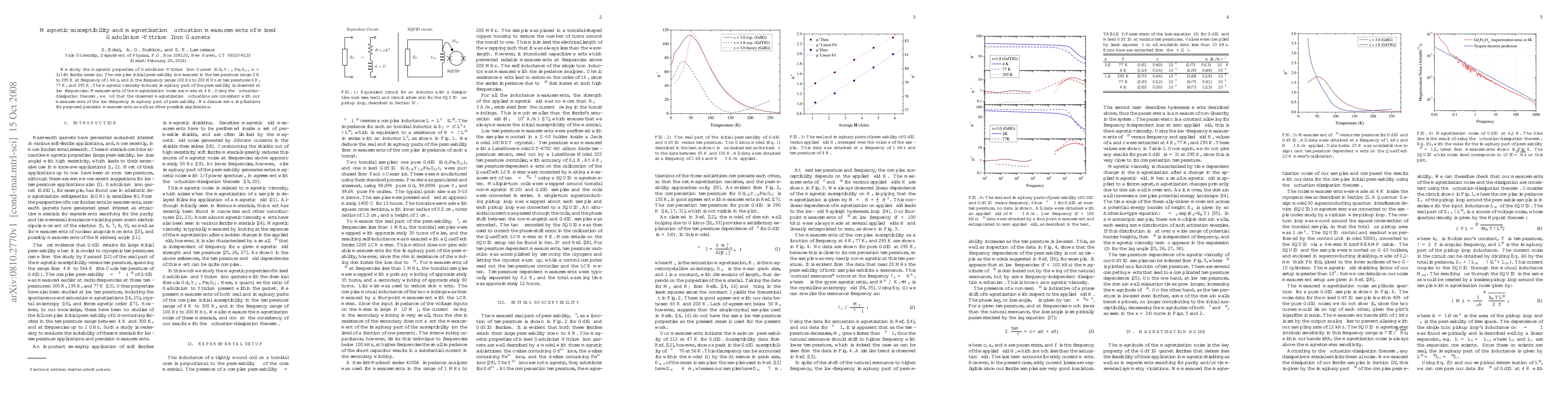 We study the magnetic properties of Gadolinium-Yttrium Iron Garnet ($\text{Gd}_{x}\text{Y}_{3-x}\text{Fe}_5\text{0}_{12}$, $x=3,1.8$) ferrite ceramics. The complex initial permeability is measured in the temperature range 2 K to 295 K at frequency of 1 kHz, and in the frequency range 100 Hz to 200 MHz at temperatures 4 K, 77 K, and 295 K. The magnetic viscosity-induced imaginary part of the permeability is observed at low frequencies. Measurements of the magnetization noise are made at 4 K. Using the fluctuation-dissipation theorem, we find that the observed magnetization fluctuations are consistent with our measurements of the low-frequency imaginary part of permeability. We discuss some implications for proposed precision measurements as well as other possible applications.