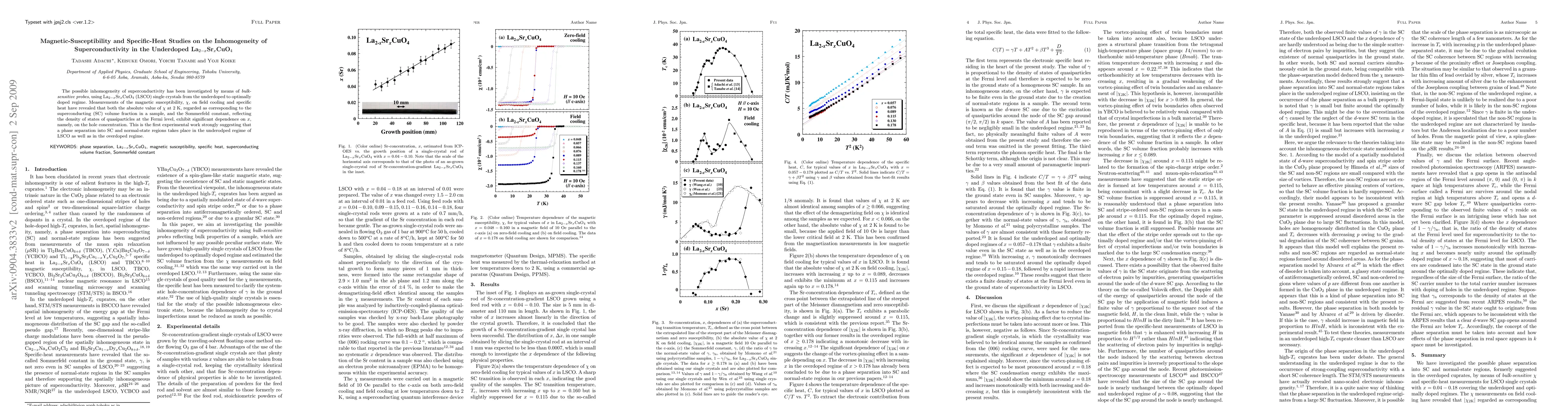 This research uses magnetic susceptibility and specific-heat measurements on La_2-x_Sr_x_CuO_4_ crystals to reveal inhomogeneity in superconductivity. The findings suggest a phase separation into superconducting and normal-state regions in underdoped and overdoped regimes, indicating a dependence on hole concentration.