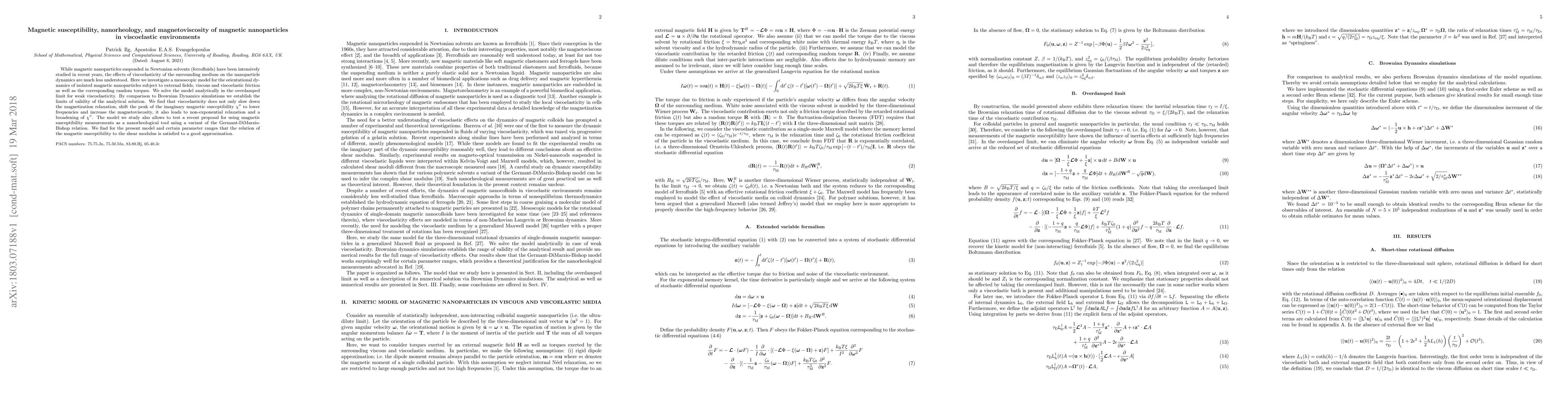 This paper explores the dynamics of magnetic nanoparticles in viscoelastic environments, finding that viscoelasticity slows magnetization relaxation and broadens magnetic susceptibility peaks. The study validates an analytical model against simulations and supports the use of magnetic susceptibility as a nanorheological tool.