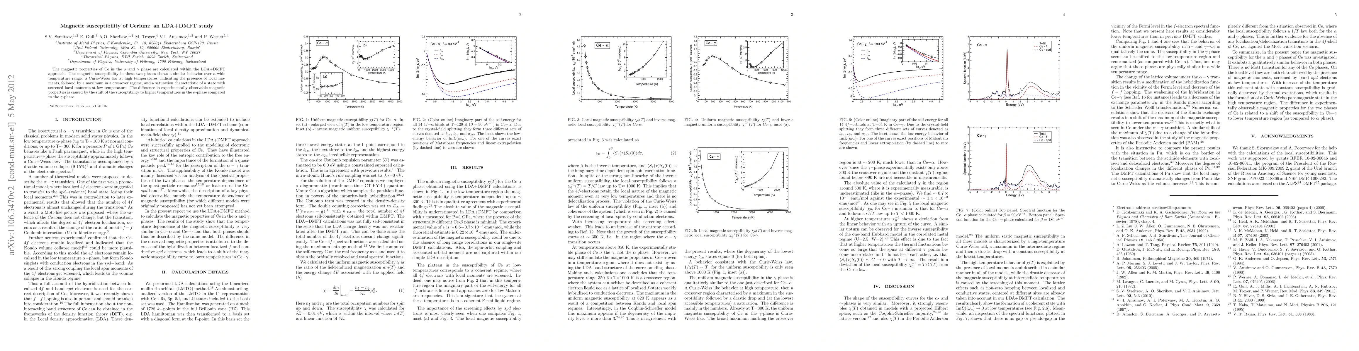 Researchers used a combined computational approach to study Ce's magnetic properties, finding similar behavior in the $eta$ phase with local moments, whereas the $ u$-phase shows different magnetic properties due to hybridization differences.