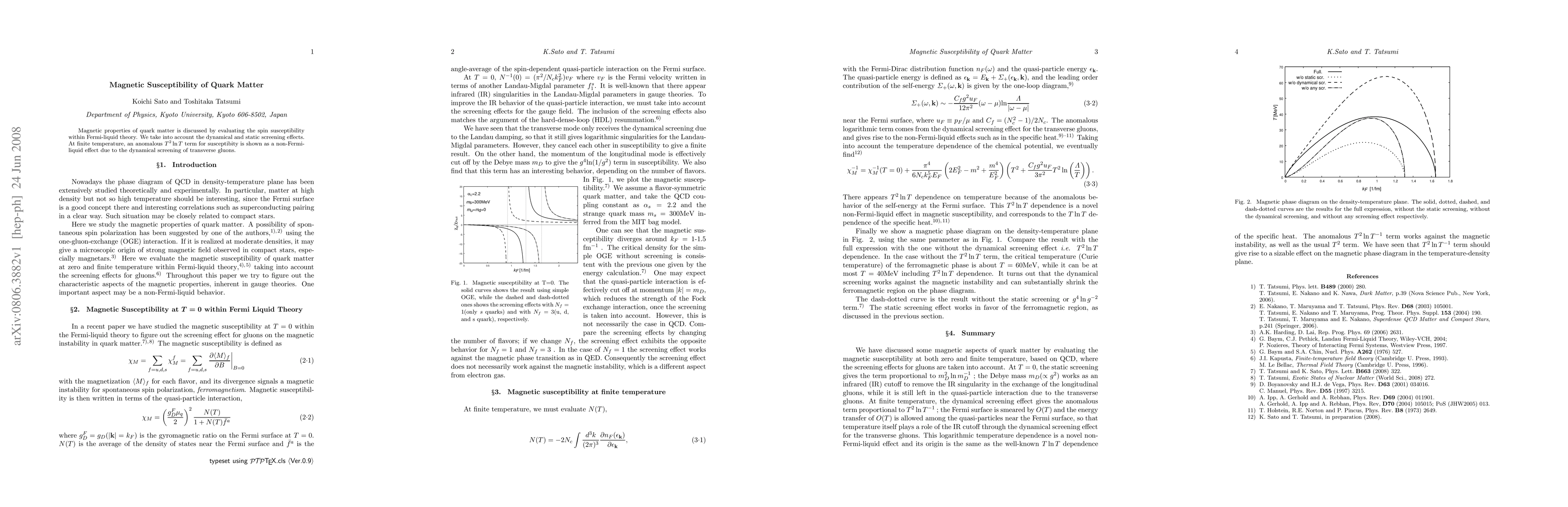 Magnetic properties of quark matter is discussed by evaluating the spin susceptibility within Fermi-liquid theory. We take into account the dynamical and static screening effects. At finite temperature, an anomalous T^2 ln T term for susceptibity is shown as a non-Fermi-liquid effect due to the dynamical screening of transverse gluons.