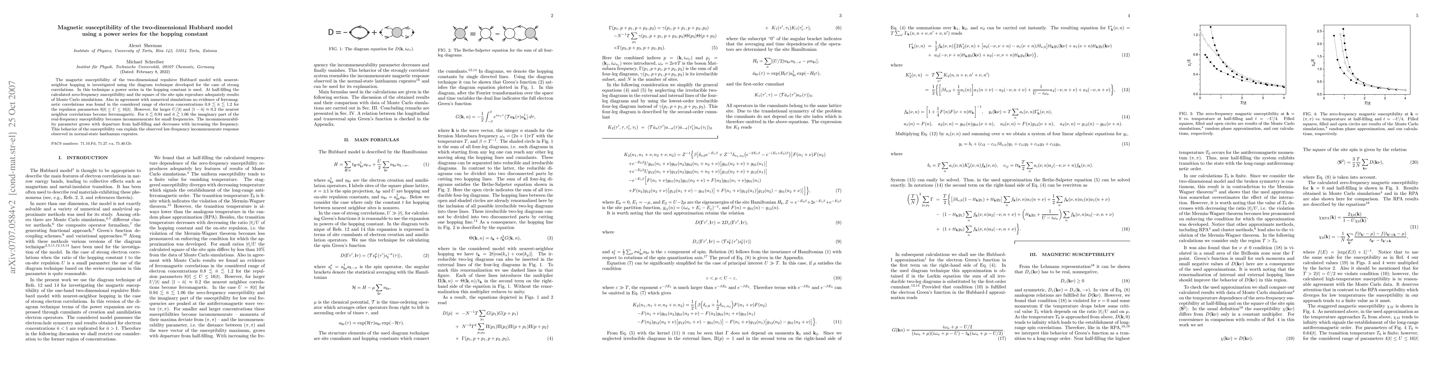 The magnetic susceptibility of the two-dimensional repulsive Hubbard model with nearest-neighbor hopping is investigated using the diagram technique developed for the case of strong correlations. In this technique a power series in the hopping constant is used. At half-filling the calculated zero-frequency susceptibility and the square of the site spin reproduce adequately results of Monte Carlo simulations. Also in agreement with numerical simulations no evidence of ferromagnetic correlations was found in the considered range of electron concentrations $0.8\alt\bar{n}\alt 1.2$ for the repulsion parameters $8|t|\leq U\leq 16|t|$. However, for larger $U/|t|$ and $|1-\bar{n}|\approx 0.2$ the nearest neighbor correlations become ferromagnetic. For $\bar{n}\alt 0.94$ and $\bar{n}\agt 1.06$ the imaginary part of the real-frequency susceptibility becomes incommensurate for small frequencies. The incommensurability parameter grows with departure from half-filling and decreases with increasing the frequency. This behavior of the susceptibility can explain the observed low-frequency incommensurate response observed in normal-state lanthanum cuprates.