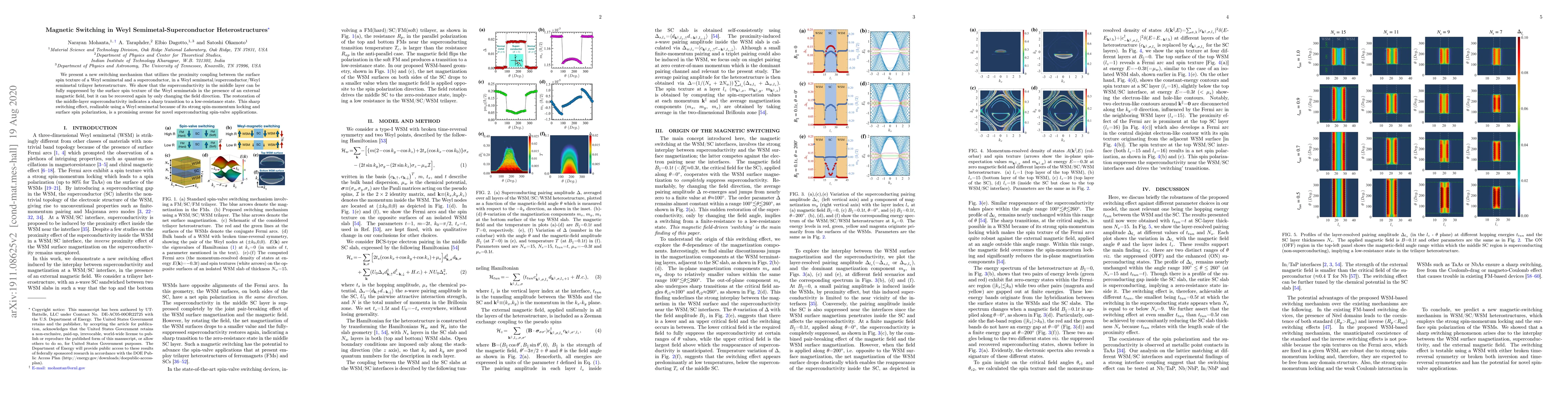 This paper introduces a novel magnetic switching mechanism in Weyl semimetal-superconductor heterostructures, where superconductivity in the middle layer can be suppressed by an external magnetic field and restored by reversing the field, leveraging the strong spin-momentum locking of Weyl semimetals. This sharp transition holds potential for advanced superconducting spin-valve applications.