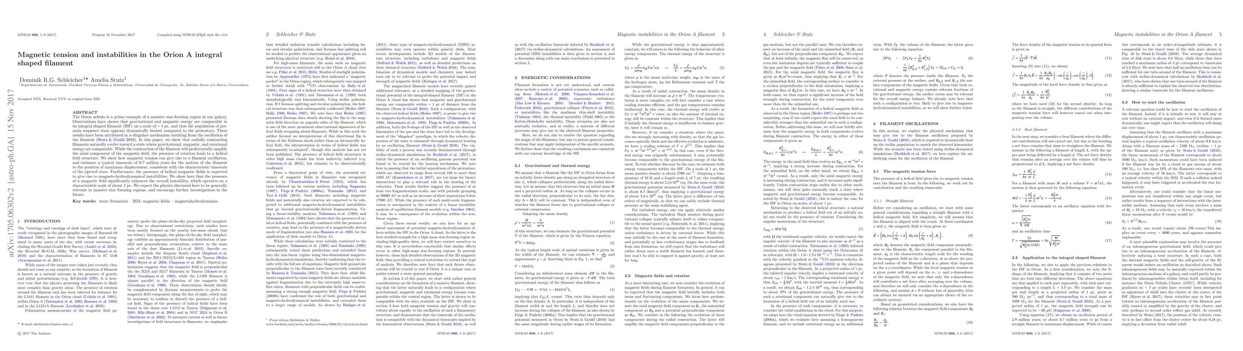 This paper explores the magnetic tension and instabilities in Orion A's integral shaped filament, demonstrating how contraction leads to comparable gravitational, magnetic, and rotational energies. It finds that helical magnetic fields, resulting from rotation, enhance magneto-hydrodynamical instabilities on a scale of ~1 pc, consistent with the observed dynamics of pre-main sequence stars.