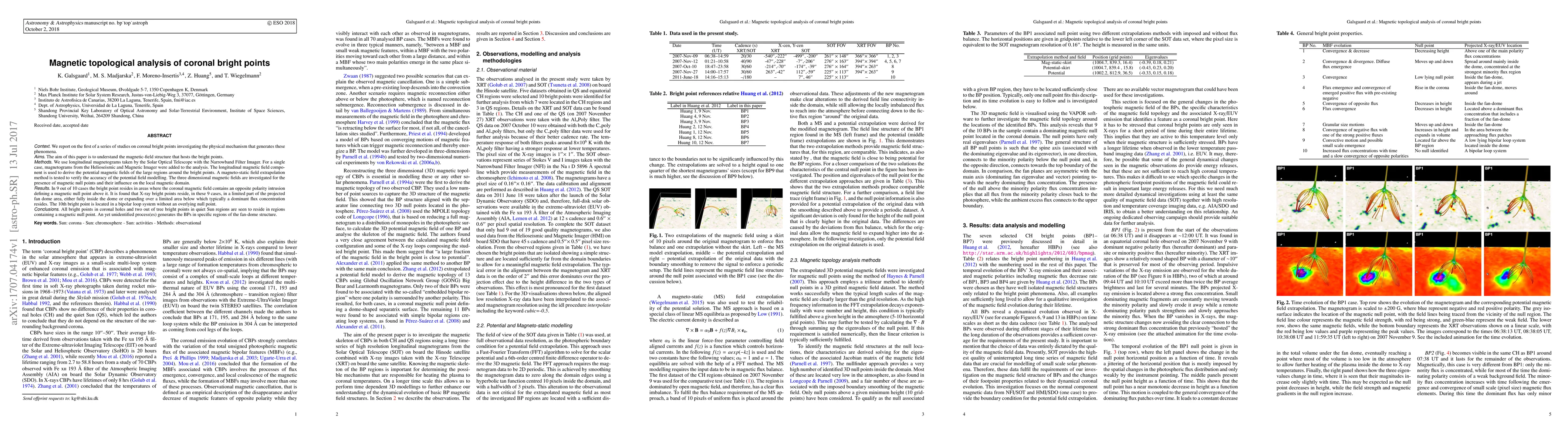 The paper presents a comprehensive magnetic topological analysis of coronal bright points using high-resolution observations from multiple space telescopes, identifying the presence and characteristics of magnetic null points in BP regions.