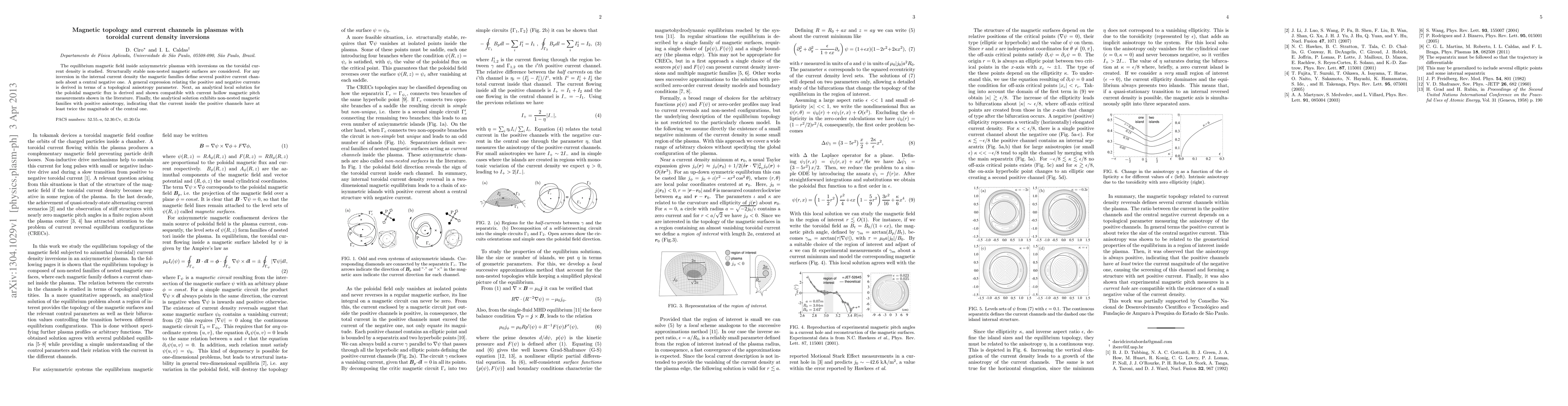 Researchers studied magnetic fields in plasmas with toroidal current density inversions, finding that currents form multiple channels around a central one, with positive channels having twice the magnitude of the central channel.