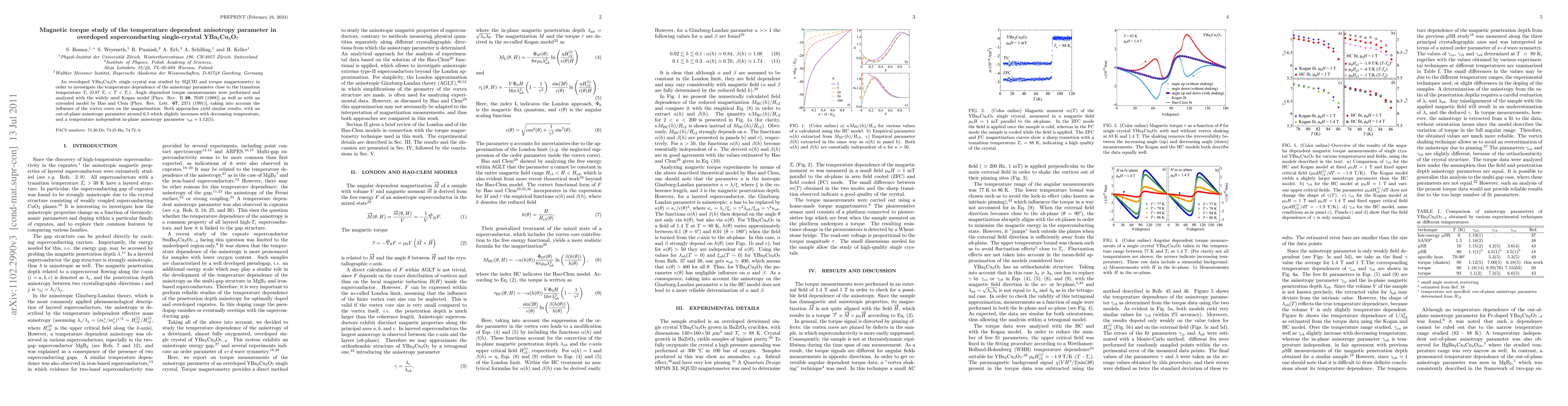 This study investigates the temperature dependence of the anisotropy parameter in overdoped YBa_2Cu_3O_7 using SQUID and torque magnetometry, finding an out-of-plane anisotropy parameter of ~6.5 that increases with decreasing temperature, while the in-plane anisotropy parameter remains constant at ~1.12.