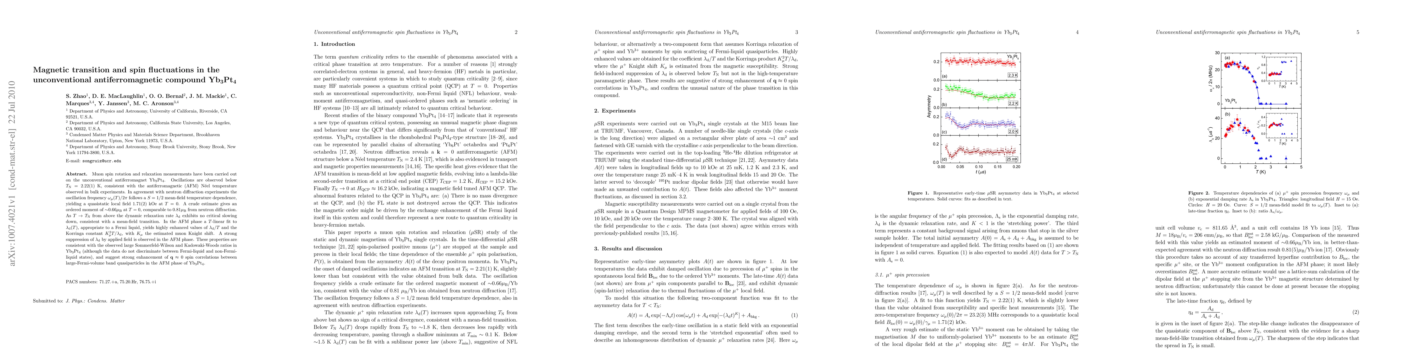 Muon spin rotation and relaxation measurements on Yb_3Pt_4 reveal an antiferromagnetic transition at T_N = 2.22(1) K, with a local field of 1.71(2) kOe at T = 0 and an ordered moment of ~0.66 mu_B. The dynamic relaxation rate shows no critical slowing down, T-linear behavior, and strong suppression by applied fields, suggesting enhanced spin correlations between quasiparticles in the AFM phase.