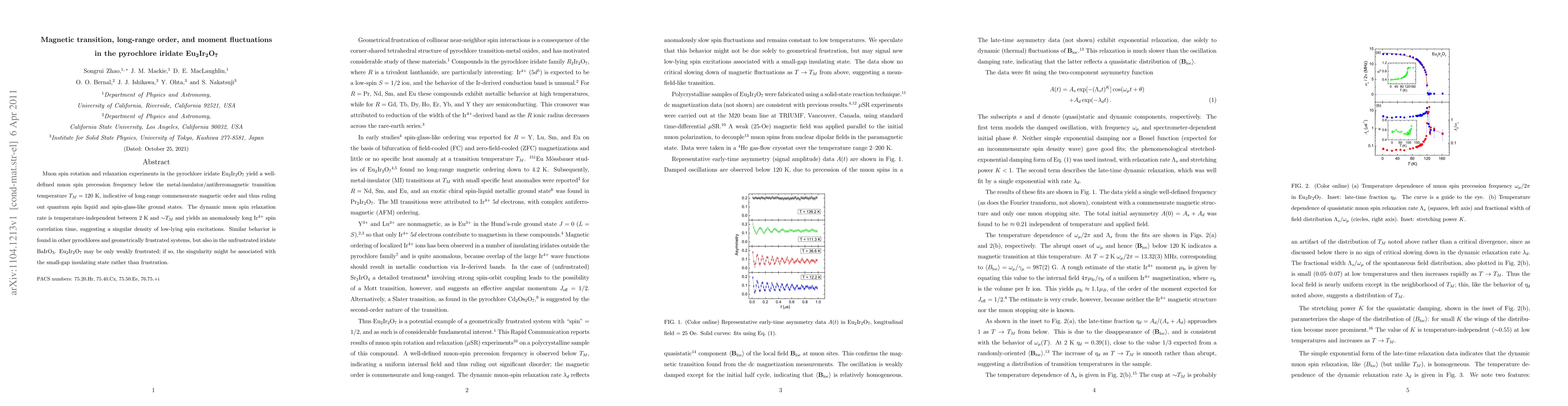 Muon spin rotation experiments in Eu2Ir2O7 reveal long-range magnetic order below 120K, ruling out quantum spin liquid or glass-like states. Anomalously long Ir^4+ spin correlation times suggest unique low-lying excitations, possibly linked to small-gap insulating state rather than frustration.