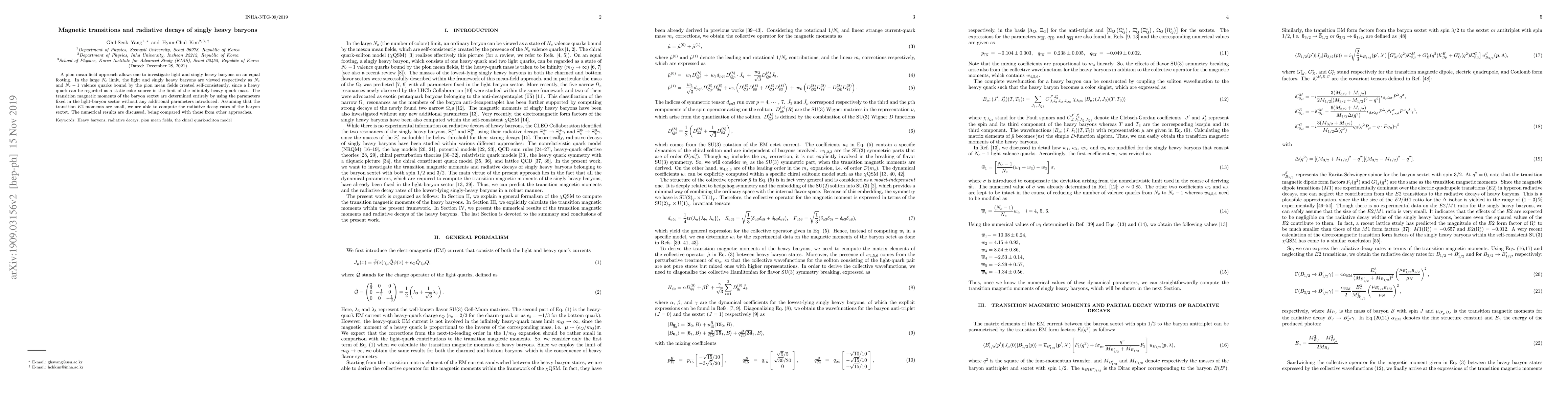 This paper uses a pion mean-field approach to study magnetic transitions and radiative decays of singly heavy baryons, determining transition magnetic moments without additional parameters. The computed radiative decay rates are compared with other methods, providing insights into the behavior of baryons in the large $N_c$ limit.