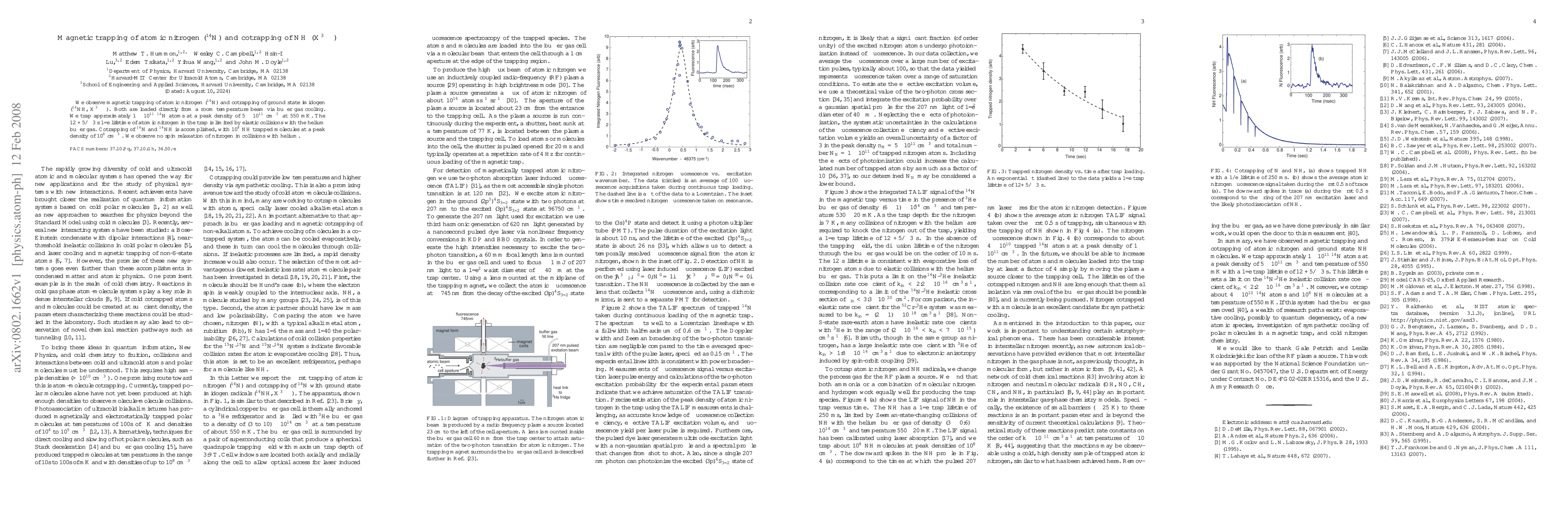This paper reports the magnetic trapping of atomic nitrogen (14^N) and cotrapping of ground state imidogen (14^NH), achieving approximately 1 * 10^11 nitrogen atoms and 10^8 NH molecules. The nitrogen trapping is limited by helium buffer gas collisions.