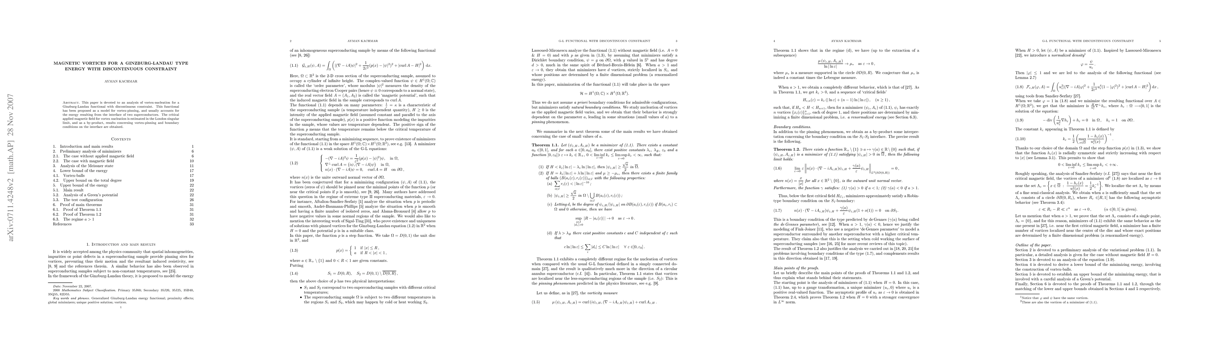 This paper is devoted to an analysis of vortex-nucleation for a Ginzburg-Landau functional with discontinuous constraint. This functional has been proposed as a model for vortex-pinning, and usually accounts for the energy resulting from the interface of two superconductors. The critical applied magnetic field for vortex nucleation is estimated in the London singular limit, and as a by-product, results concerning vortex-pinning and boundary conditions on the interface are obtained.