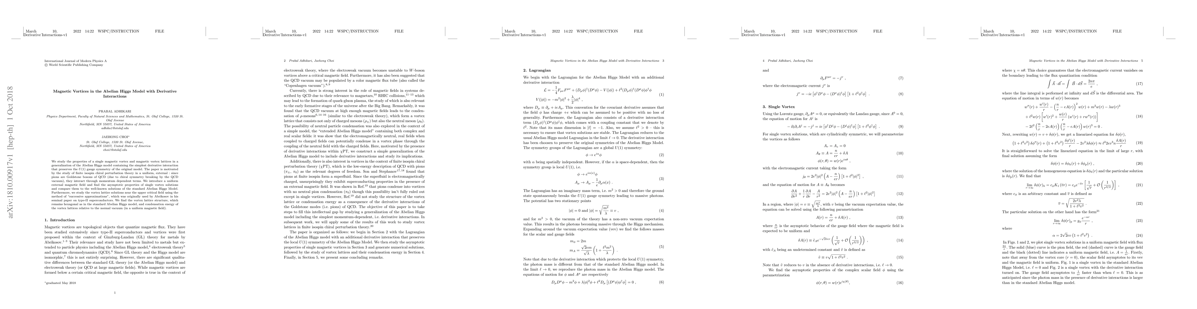 Researchers studied magnetic vortices in a modified Abelian Higgs model with derivative interactions, finding hexagonal vortex lattices with condensation energy similar to the standard model.