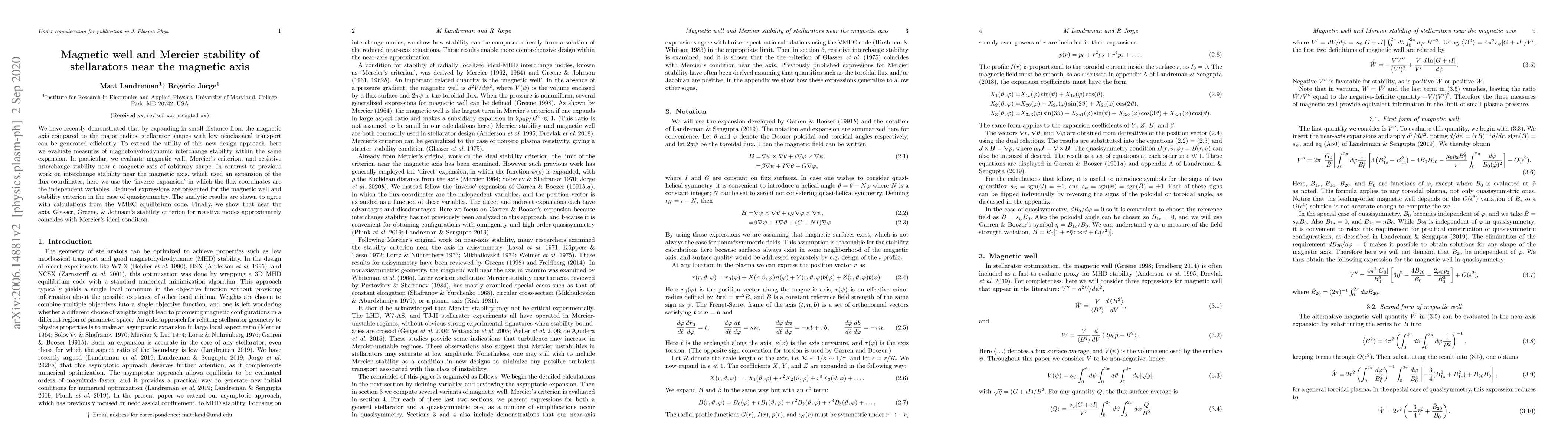 This paper explores the magnetic well and Mercier stability of stellarators near the magnetic axis using an inverse expansion in flux coordinates, demonstrating efficient low-neoclassical transport design. It presents reduced expressions for stability criteria and shows agreement with VMEC calculations, concluding that Glasser, Greene, & Johnson's resistive mode criterion aligns with Mercier's ideal condition near the axis.