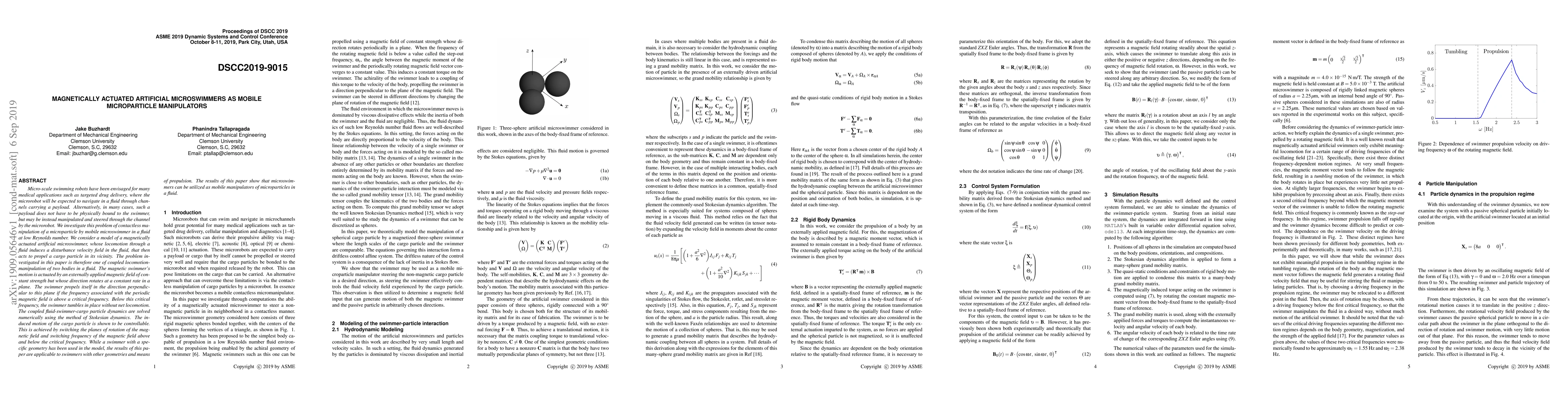 This paper explores the use of magnetically actuated microswimmers for contactless manipulation of microparticles in fluid environments. The study demonstrates that these microswimmers can controllably propel nearby particles by adjusting the magnetic field's rotation frequency and plane, showing potential for medical applications like targeted drug delivery.