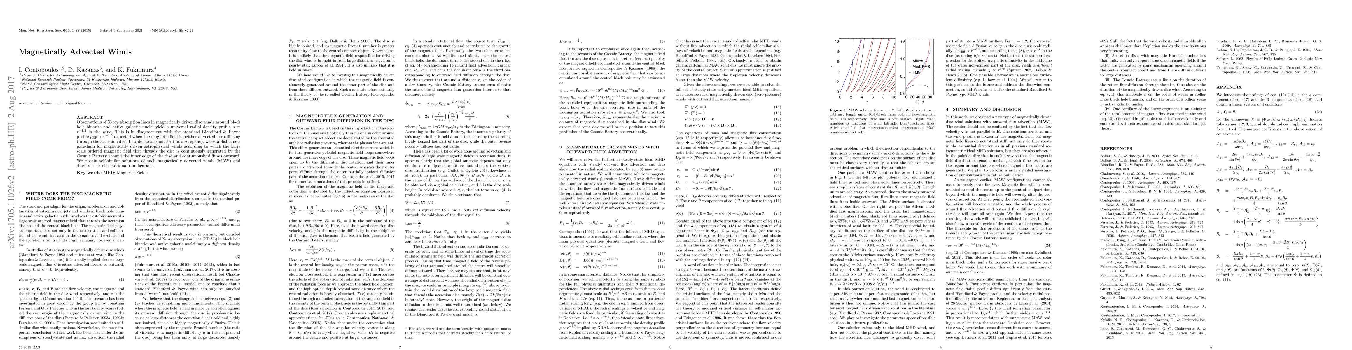 Observations of X-ray absorption lines in magnetically driven disk winds around black hole binaries and active galactic nuclei yield a universal radial density profile rho proportional to r^{-1.2} in the wind. This is in disagreement with the standard Blandford & Payne profile rho_BP proportional to r^{-1.5} expected when the magnetic field is neither advected nor diffusing through the accretion disk. In order to account for this discrepancy, we establish a new paradigm for magnetically driven astrophysical winds according to which the large scale ordered magnetic field that threads the disk is continuously generated by the Cosmic Battery around the inner edge of the disk and continuously diffuses outward. We obtain self-similar solutions of such magnetically advected winds (MAW) and discuss their observational ramifications.
