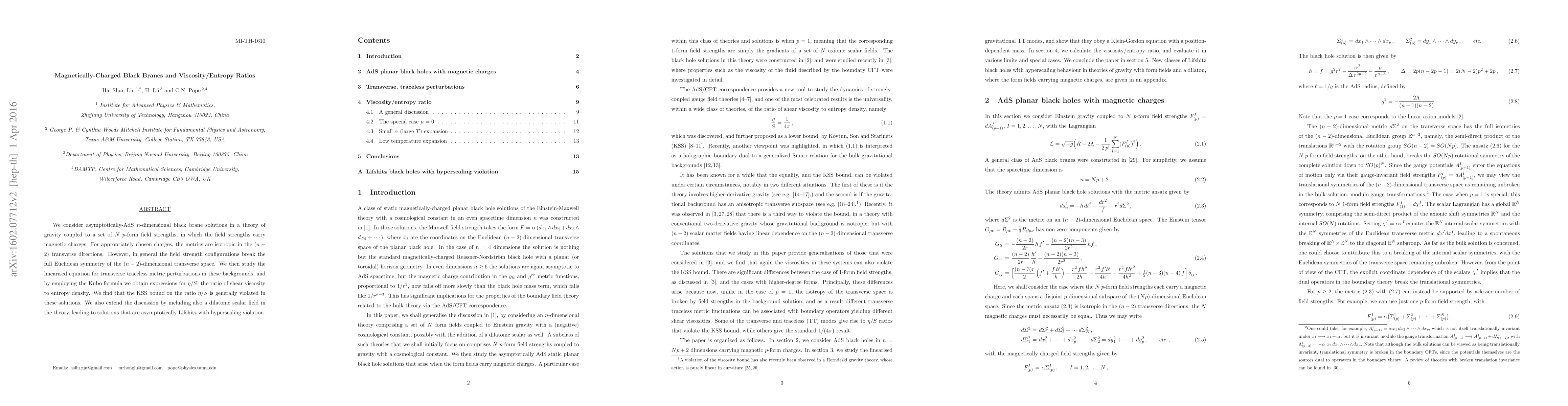 We consider asymptotically-AdS $n$-dimensional black brane solutions in a theory of gravity coupled to a set of $N$ $p$-form field strengths, in which the field strengths carry magnetic charges. For appropriately chosen charges, the metrics are isotropic in the $(n-2)$ transverse directions. However, in general the field strength configurations break the full Euclidean symmetry of the $(n-2)$-dimensional transverse space. We then study the linearised equation for transverse traceless metric perturbations in these backgrounds, and by employing the Kubo formula we obtain expressions for $\eta/S$, the ratio of shear viscosity to entropy density. We find that the KSS bound on the ratio $\eta/S$ is generally violated in these solutions. We also extend the discussion by including also a dilatonic scalar field in the theory, leading to solutions that are asymptotically Lifshitz with hyperscaling violation.