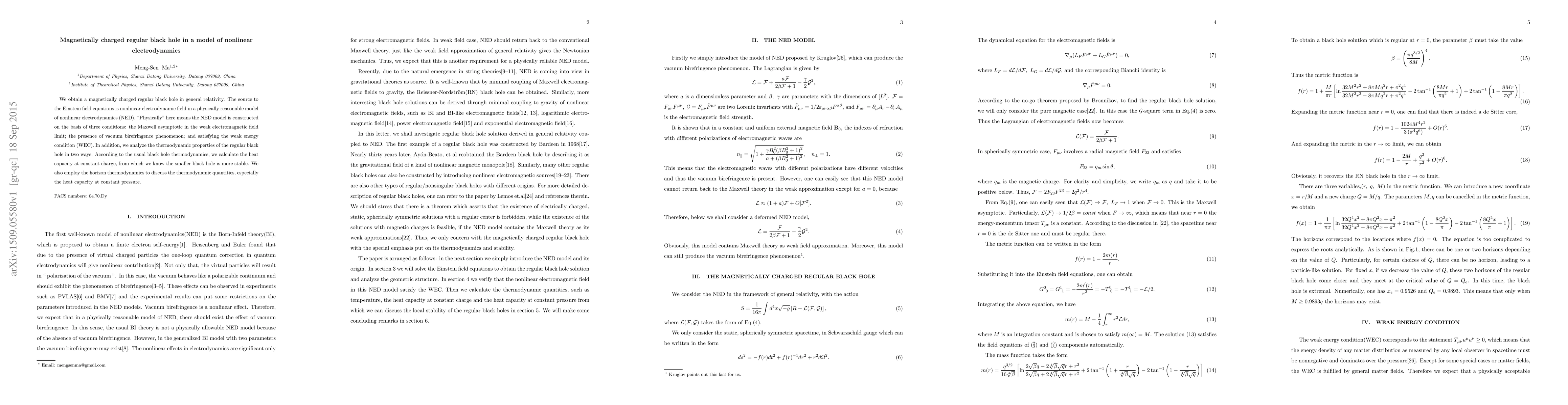 This paper presents a magnetically charged regular black hole derived from a nonlinear electrodynamic field model that satisfies Maxwell's limits, vacuum birefringence, and the weak energy condition. It analyzes the thermodynamic properties of the black hole, finding smaller black holes are more stable according to traditional and horizon thermodynamics.