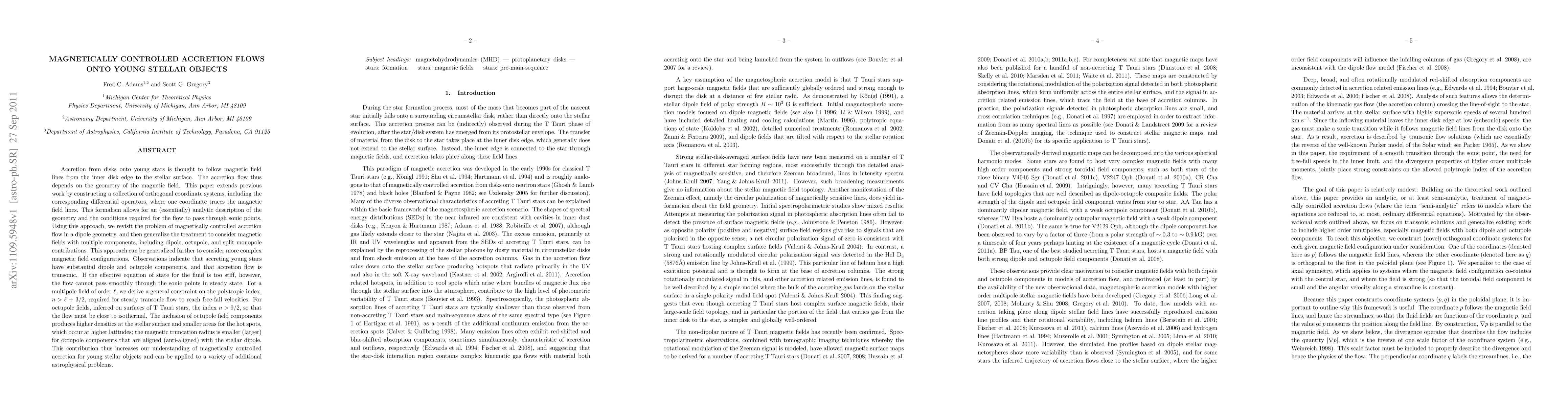 (abridged) Accretion from disks onto young stars is thought to follow magnetic field lines from the inner disk edge to the stellar surface. The accretion flow thus depends on the geometry of the magnetic field. This paper extends previous work by constructing a collection of orthogonal coordinate systems, including the corresponding differential operators, where one coordinate traces the magnetic field lines. This formalism allows for an (essentially) analytic description of the geometry and the conditions required for the flow to pass through sonic points. Using this approach, we revisit the problem of magnetically controlled accretion flow in a dipole geometry, and then generalize the treatment to consider magnetic fields with multiple components, including dipole, octupole, and split monopole contributions. This approach can be generalized further to consider more complex magnetic field configurations. Observations indicate that accreting young stars have substantial dipole and octupole components, and that accretion flow is transonic. If the effective equation of state for the fluid is too stiff, the flow cannot pass smoothly through the sonic points in steady state. For a multipole field of order \ell, we derive a constraint on the polytropic index, n>\ell+3/2, required for steady transonic flow to reach free-fall velocities. For octupole fields, inferred on surfaces of T Tauri stars, n>9/2, so that the flow must be close to isothermal. The inclusion of octupole field components produces higher densities at the stellar surface and smaller hot spots, which occur at higher latitudes; the magnetic truncation radius is also modified. This contribution thus increases our understanding of magnetically controlled accretion for young stellar objects and can be applied to a variety of additional astrophysical problems.