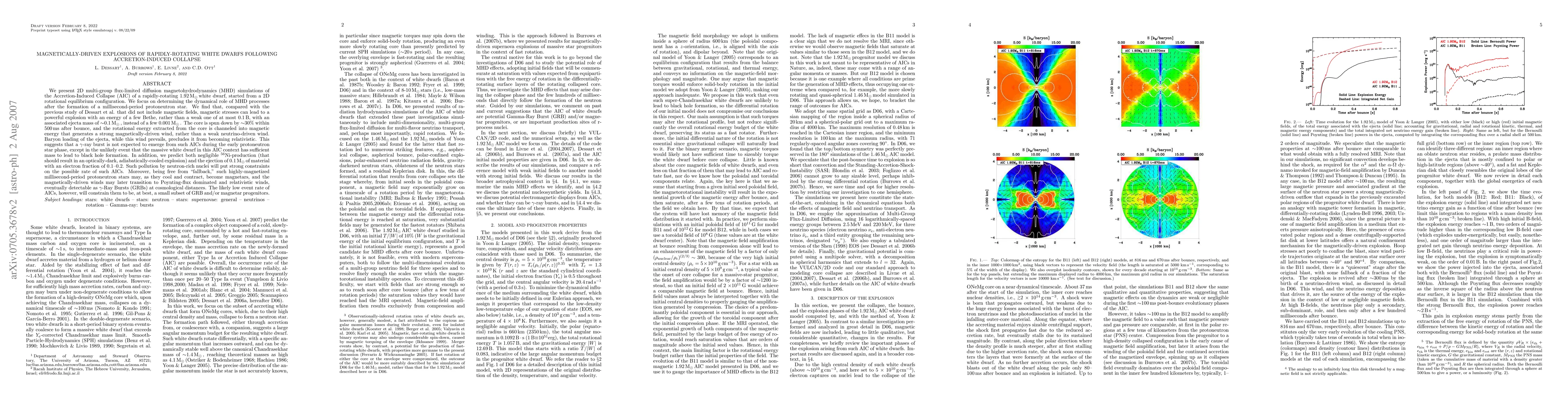 We present 2D multi-group flux-limited diffusion magnetohydrodynamics (MHD) simulations of the Accretion-Induced Collapse (AIC) of a rapidly-rotating white dwarf. We focus on the dynamical role of MHD processes after the formation of a millisecond-period protoneutron star. We find that including magnetic fields and stresses can lead to a powerful explosion with an energy of a few Bethe, rather than a weak one of at most 0.1 Bethe, with an associated ejecta mass of ~0.1Msun, instead of a few 0.001Msun. The core is spun down by ~30% within 500ms after bounce, and the rotational energy extracted from the core is channeled into magnetic energy that generates a strong magnetically-driven wind, rather than a weak neutrino-driven wind. Baryon loading of the ejecta, while this wind prevails, precludes it from becoming relativistic. This suggests that a GRB is not expected to emerge from such AICs during the early protoneutron star phase, except in the unlikely event that the massive white dwarf has sufficient mass to lead to black hole formation. In addition, we predict both negligible 56Ni-production (that should result in an optically-dark, adiabatically-cooled explosion) and the ejection of 0.1Msun of material with an electron fraction of 0.1-0.2. Such pollution by neutron-rich nuclei puts strong constraints on the possible rate of such AICs. Moreover, being free from ``fallback,'' such highly-magnetized millisecond-period protoneutron stars may later become magnetars, and the magnetically-driven winds may later transition to Poynting-flux-dominated, relativistic winds, eventually detectable as GRBs at cosmological distances. However, the low expected event rate of AICs will constrain them to be, at best, a small subset of GRB and/or magnetar progenitors.