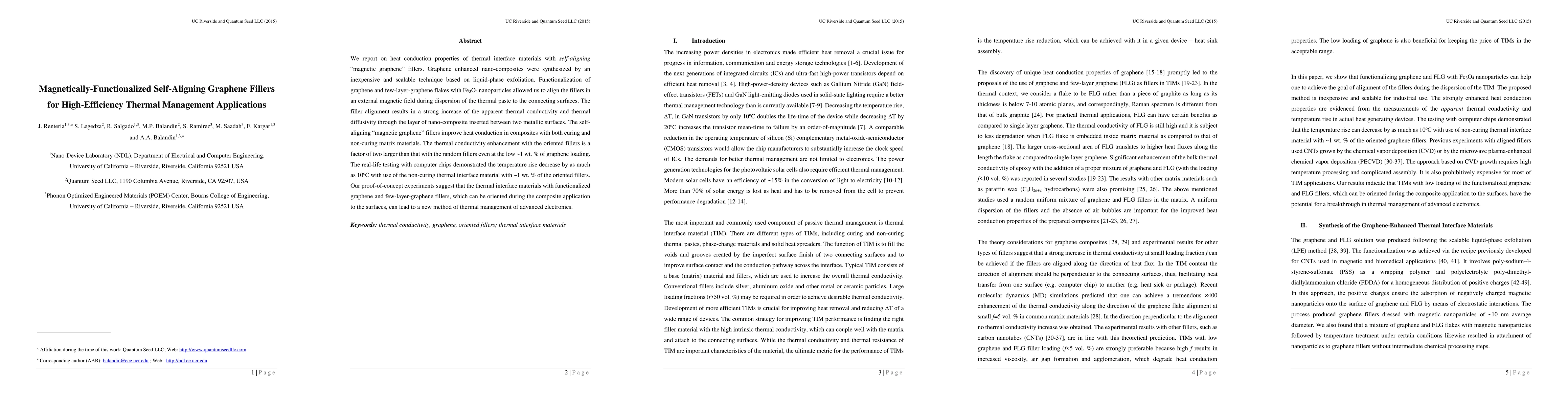 This paper presents a novel thermal interface material using magnetically-functionalized graphene fillers that significantly enhance thermal conductivity through self-alignment in an external magnetic field. The method results in a twofold increase in thermal conductivity compared to random fillers, demonstrating a potential new approach for efficient thermal management in electronics.