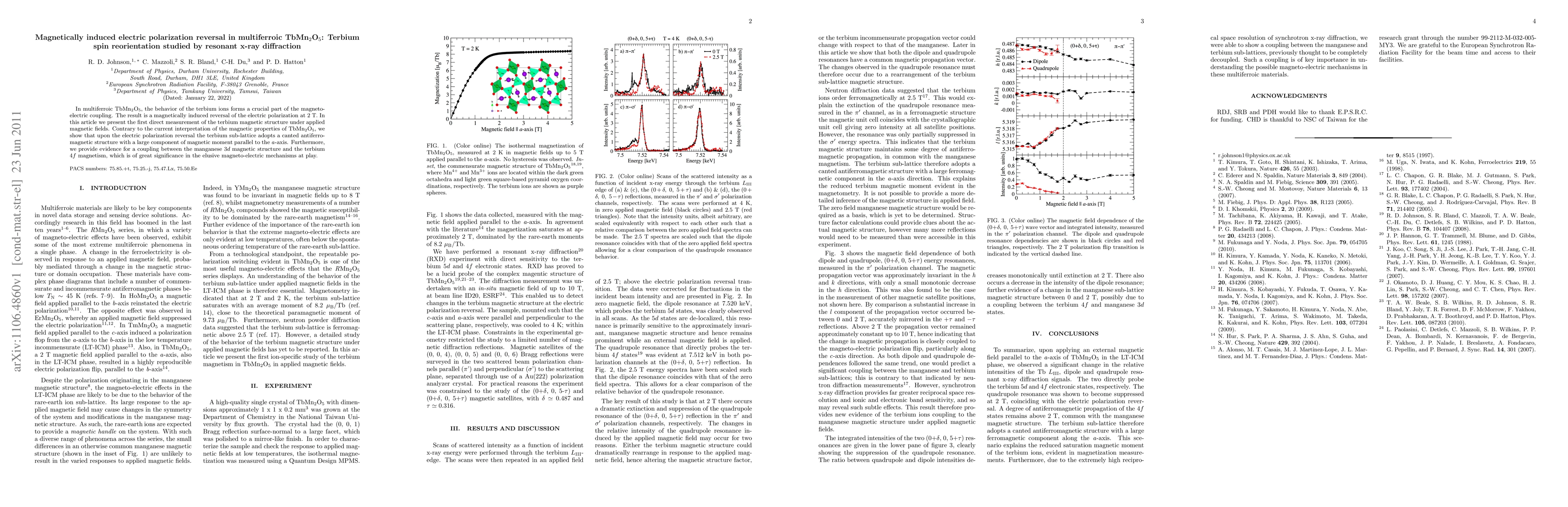 This study reveals a magnetically induced electric polarization reversal in the multiferroic TbMn$_2$O$_5$ through terbium spin reorientation, demonstrating a canted antiferromagnetic structure in the terbium sub-lattice and significant coupling between manganese and terbium magnetic structures.