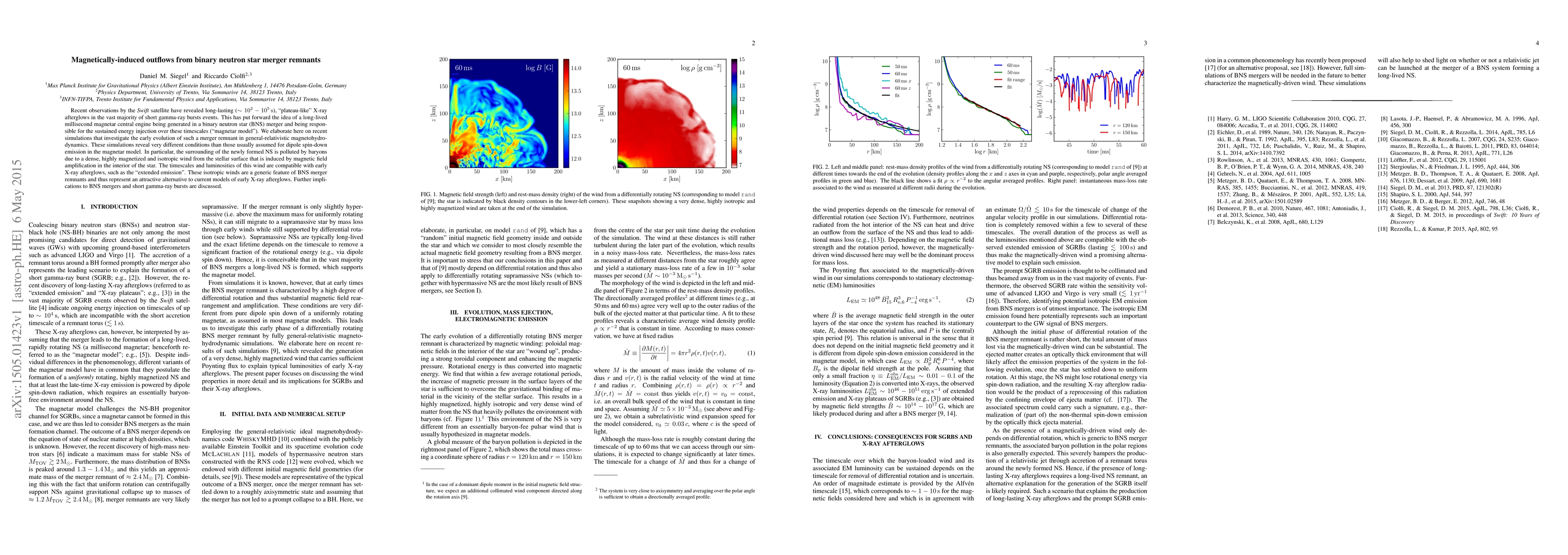 The paper presents detailed general-relativistic magnetohydrodynamics simulations of binary neutron star merger remnants, revealing the generation of a powerful, baryon-laden magnetically-driven wind that can explain early X-ray afterglows in short gamma-ray bursts.