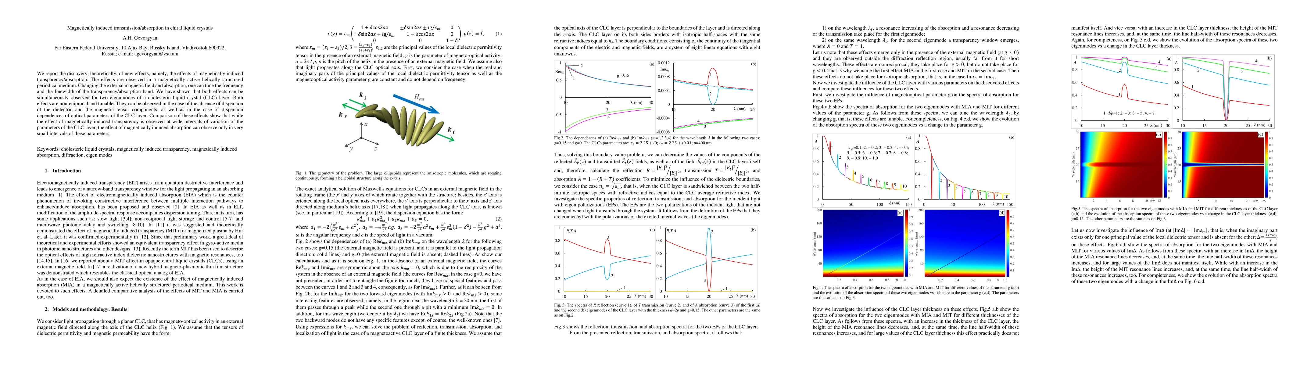 This research identifies new phenomena, magnetically induced transparency and absorption, in chiral liquid crystals. These effects, observable under varying magnetic fields, allow for tunable frequency and linewidth of transparency/absorption bands. The effects are nonreciprocal and can be seen for specific CLC layer eigenmodes, with transparency more widely tunable than absorption under certain CLC layer parameter variations.