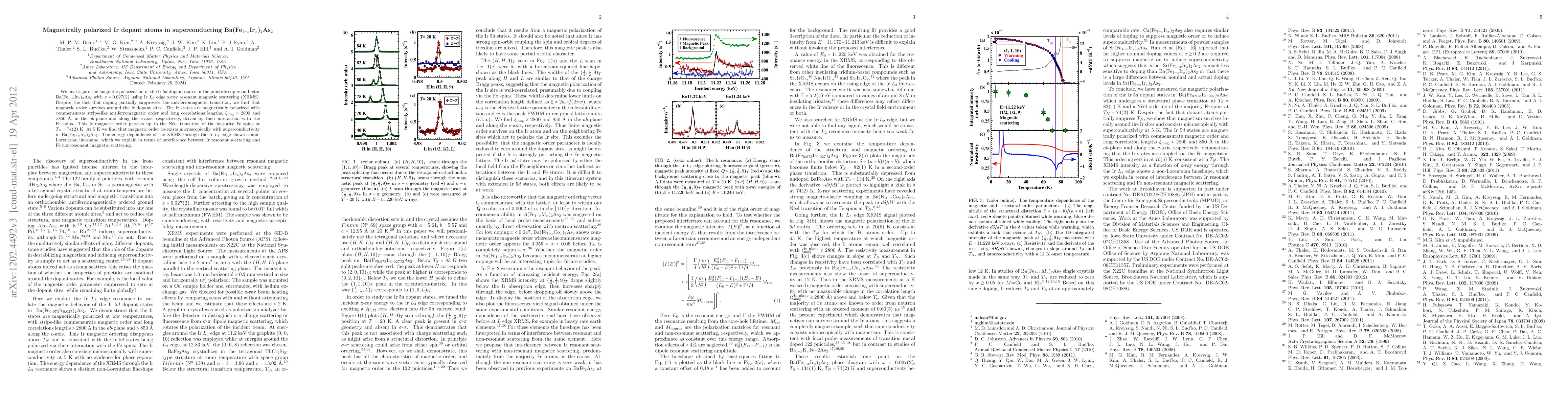 We investigate the magnetic polarization of the Ir $5d$ dopant states in the pnictide superconductor Ba(Fe$_{1-x}$Ir$_x$)$_2$As$_2$ with $x=0.027(2)$ using Ir $L_3$ edge x-ray resonant magnetic scattering (XRMS). Despite the fact that doping partially suppresses the antiferromagnetic transition, we find that magnetic order survives around the Ir dopant sites. The Ir states are magnetically polarized with commensurate stripe-like antiferromagnetic order and long correlations lengths, $\xi_{\text{mag}}>$ 2800 and $>$850 \AA{}, in the $ab$-plane and along the c-axis, respectively, driven by their interaction with the Fe spins. This Ir magnetic order persists up to the N\'{e}el transition of the majority Fe spins at $T_N=74(2)$ K. At 5 K we find that magnetic order co-exists microscopically with superconductivity in Ba(Fe$_{1-x}$Ir$_x$)$_2$As$_2$. The energy dependence of the XRMS through the Ir $L_3$ edge shows a non-Lorentzian lineshape, which we explain in terms of interference between Ir resonant scattering and Fe non-resonant magnetic scattering.