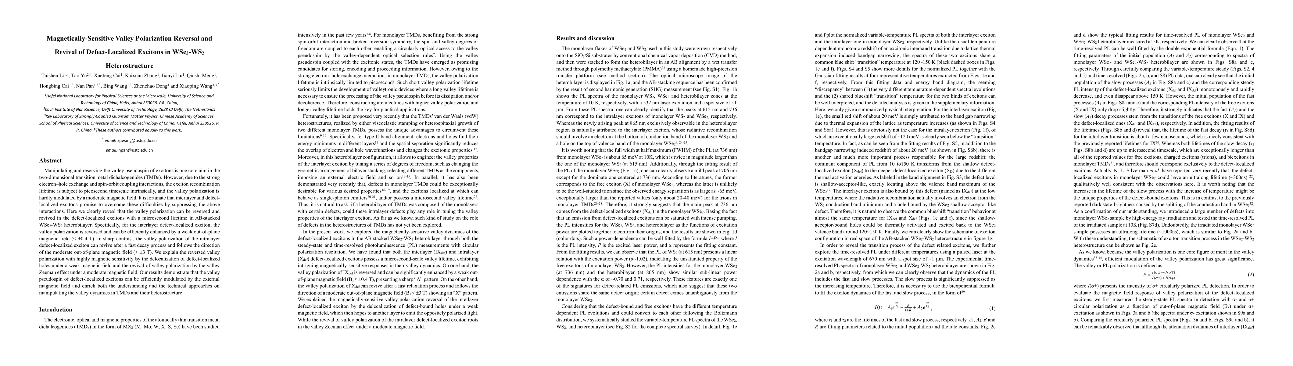 This paper investigates the magnetically-sensitive valley polarization reversal and revival in defect-localized excitons within WSe2-WS2 heterobilayers, showing that a weak magnetic field can reverse interlayer exciton valley polarization while a moderate field can revive intralayer exciton valley polarization. The findings enhance the understanding and manipulation of valley dynamics in TMD heterostructures.