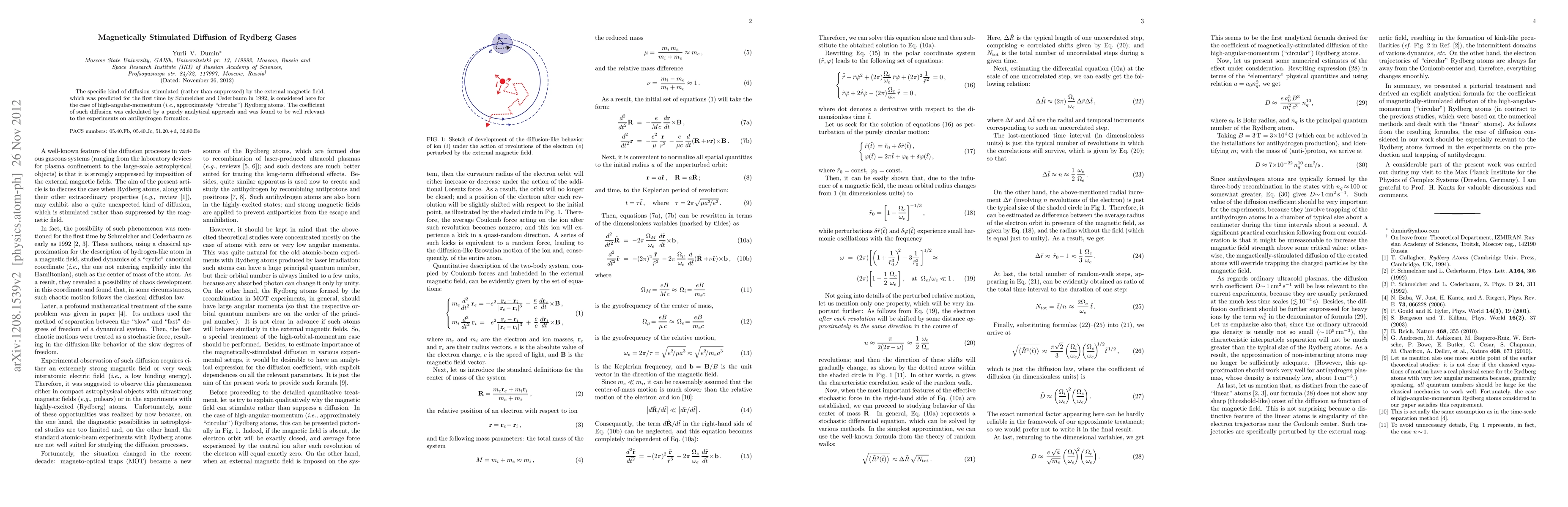 This study investigates the magnetically stimulated diffusion of high-angular-momentum Rydberg atoms, confirming the theoretical prediction by Schmelcher and Cederbaum. The analytical calculation of the diffusion coefficient aligns with experimental data related to antihydrogen formation.
