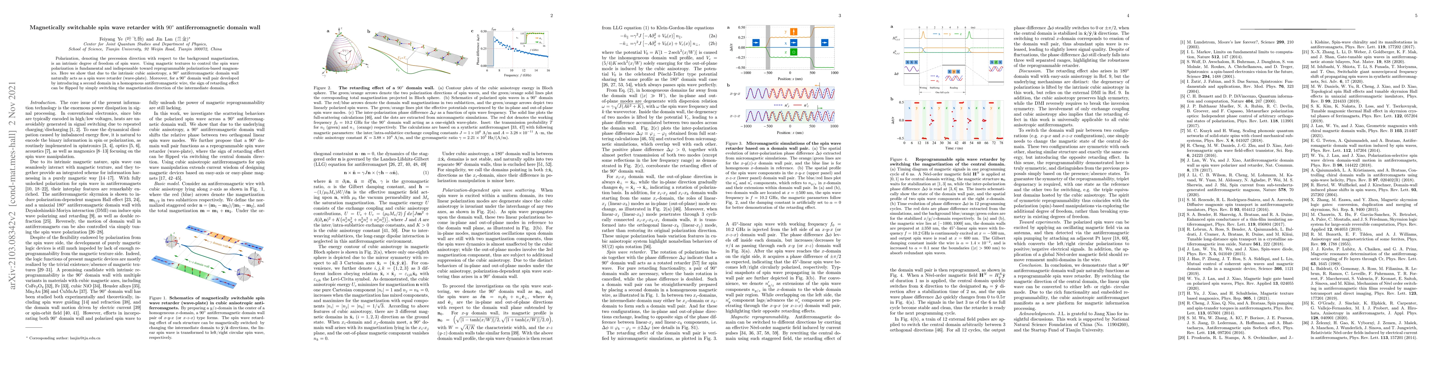 This paper demonstrates a magnetically switchable spin wave retarder using a $90^\circ$ antiferromagnetic domain wall, which naturally acts as a spin wave wave-plate due to intrinsic cubic anisotropy. By introducing a second domain, the direction of the retarding effect can be reversed by switching the intermediate domain's magnetization.