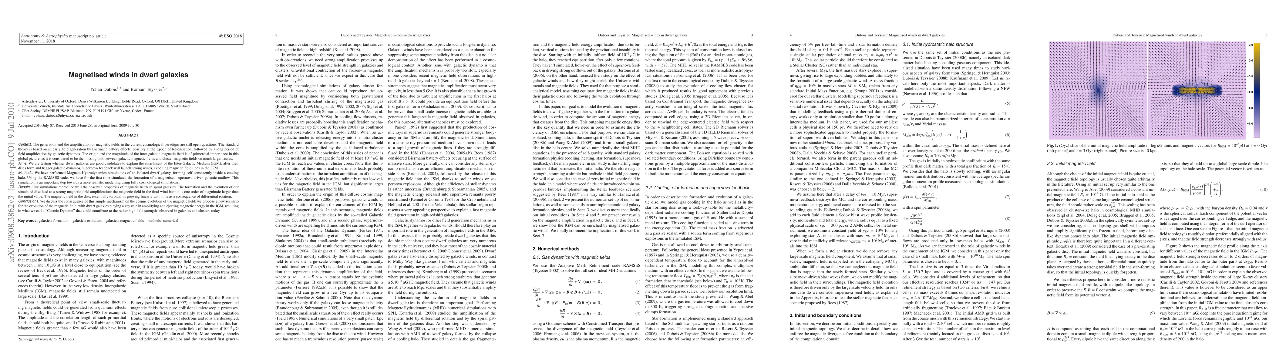 The research utilized MHD simulations with the RAMSES code to model the formation of a magnetized supernova-driven galactic outflow in an isolated dwarf galaxy forming within a cooling halo.