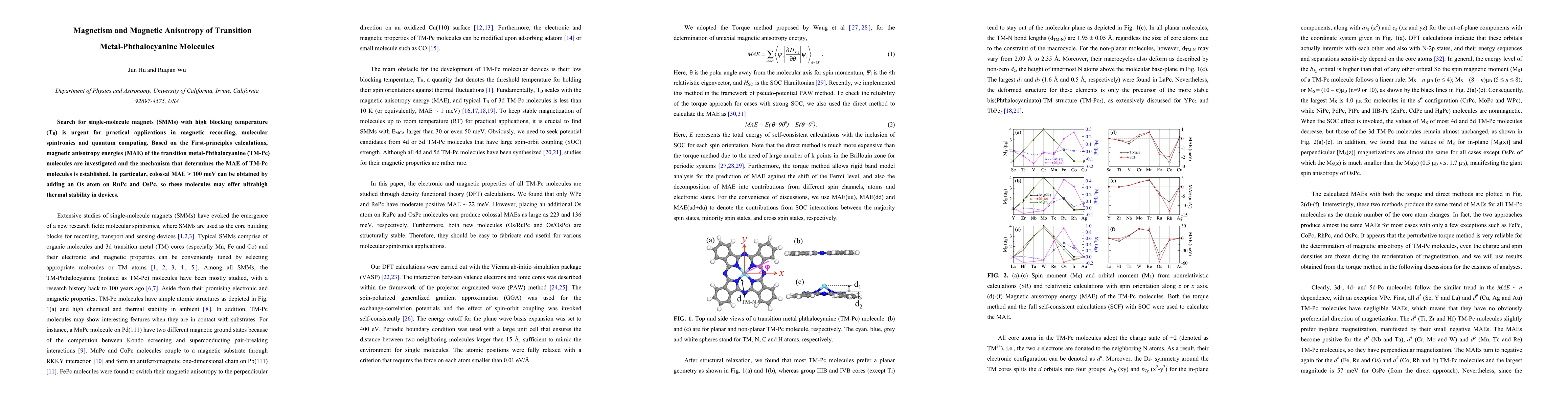 This paper investigates the magnetic anisotropy energies (MAE) of transition metal-Phthalocyanine (TM-Pc) molecules using first-principles calculations, identifying colossal MAE > 100 meV in Os-doped RuPc and OsPc, suggesting their potential for use in single-molecule magnets with high thermal stability.