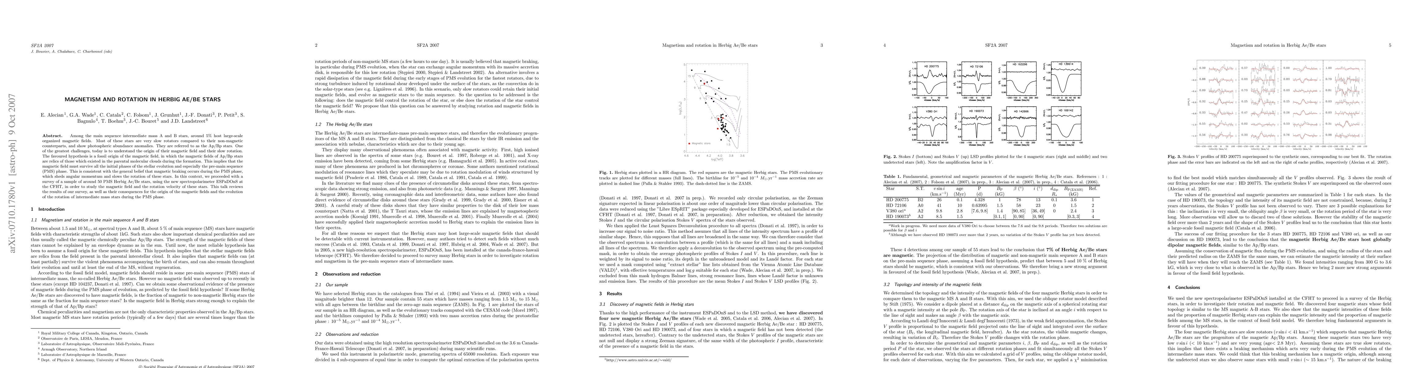 This research investigates the magnetism and rotation of pre-main sequence Herbig Ae/Be stars using the ESPaDOnS spectropolarimeter, aiming to understand the origin of magnetic fields and their slow rotation. The findings suggest that the magnetic fields may be fossil remnants from the parental molecular clouds, surviving the pre-main sequence phase despite expected magnetic braking.