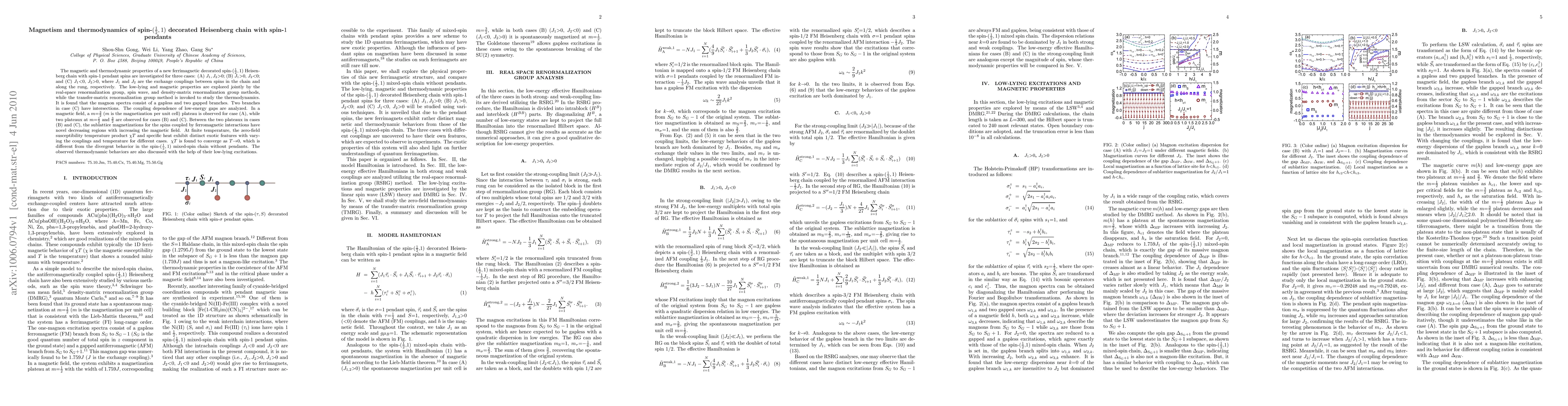 The magnetic and thermodynamic properties of a new ferrimagnetic decorated spin-(1/2,1) Heisenberg chain with spin-1 pendant spins are investigated for three cases: (A) J1,J2>0; (B) J1>0, J2<0; and (C) J1<0, J2>0, where J1 and J2 are the exchange couplings between spins in the chain and along the rung, respectively. The low-lying and magnetic properties are explored jointly by the real-space renormalization group, spin wave, and density-matrix renormalization group methods, while the transfer-matrix renormalization group method is invoked to study the thermodynamics. It is found that the magnon spectra consist of a gapless and two gapped branches. Two branches in case (C) have intersections. The coupling dependence of low-energy gaps are analyzed. In a magnetic field, an m=3/2 (m is the magnetization per unit cell) plateau is observed for case (A), while two plateaux at m=1/2 and 3/2 are observed for cases (B) and (C). Between the two plateaux in cases (B) and (C), the sublattice magnetizations for the spins coupled by ferromagnetic interactions have novel decreasing regions with increasing the magnetic field. At finite temperature, the zero-field susceptibility temperature product chi*T and specific heat exhibit distinct exotic features with varying the couplings and temperature for different cases. chi*T is found to converge as T approaches zero, which is different from the divergent behavior in the spin-(1/2,1) mixed-spin chain without pendants. The observed thermodynamic behaviors are also discussed with the help of their low-lying excitations.