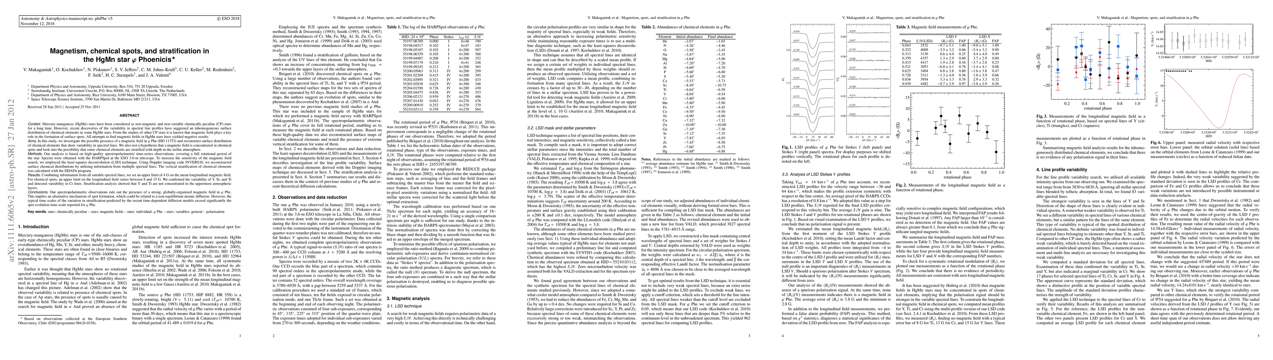 This study investigates the presence of a magnetic field in the HgMn star phi Phoenicis, finding no strong, globally-organised magnetic field, but confirming variability in spectral lines of Y, Sr, Ti, and Cr, suggesting an alternative mechanism for spot formation.