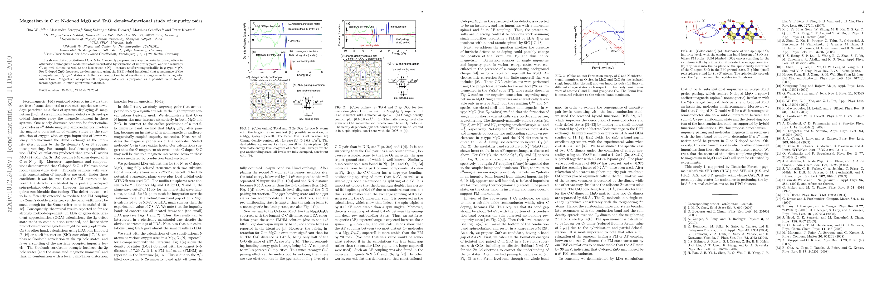 This study reveals that doping MgO with C or N leads to antiferromagnetic interactions due to impurity pairs, while C-doped ZnO exhibits long-range ferromagnetic interactions via spin-polarized C2 ppπ* resonance with the conduction band, suggesting a pathway for d0-ferromagnetism in oxide spintronic materials.