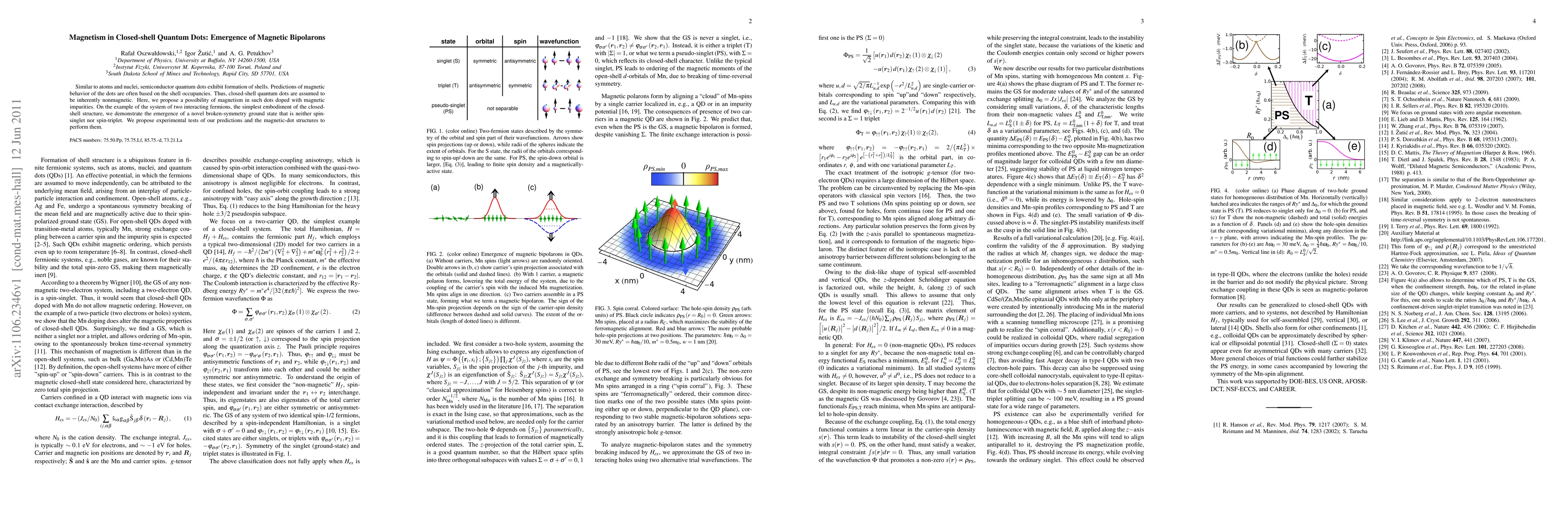 Similar to atoms and nuclei, semiconductor quantum dots exhibit formation of shells. Predictions of magnetic behavior of the dots are often based on the shell occupancies. Thus, closed-shell quantum dots are assumed to be inherently nonmagnetic. Here, we propose a possibility of magnetism in such dots doped with magnetic impurities. On the example of the system of two interacting fermions, the simplest embodiment of the closed-shell structure, we demonstrate the emergence of a novel broken-symmetry ground state that is neither spin-singlet nor spin-triplet. We propose experimental tests of our predictions and the magnetic-dot structures to perform them.