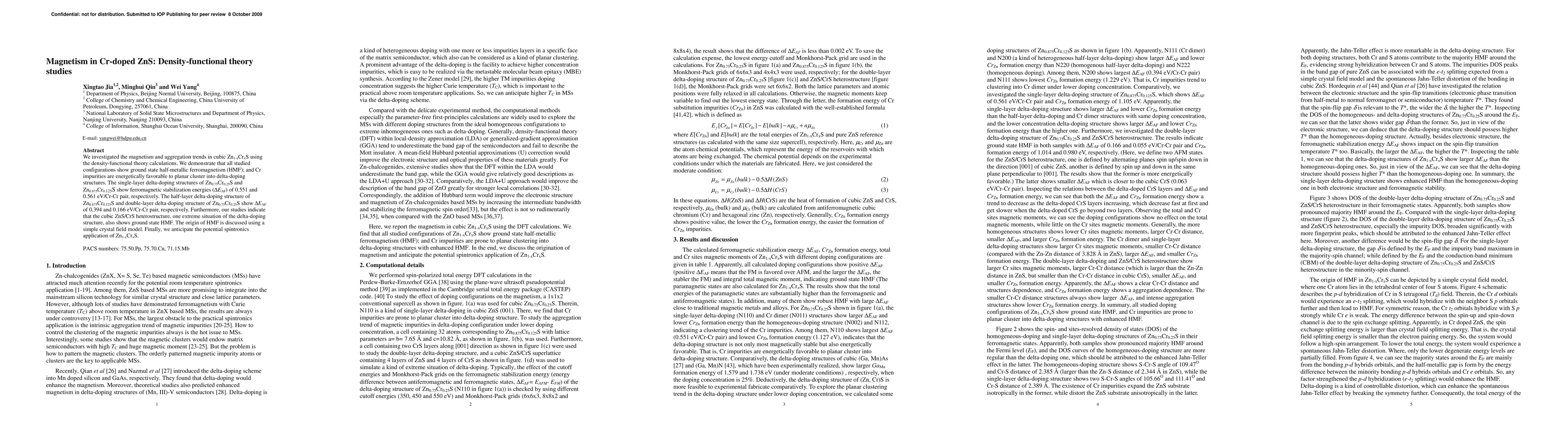This study uses density-functional theory to investigate the magnetism in Cr-doped ZnS, finding that all configurations exhibit ground state half-metallic ferromagnetism. The planar cluster formation of Cr impurities in delta-doping structures is energetically favorable, with significant ferromagnetic stabilization energies.