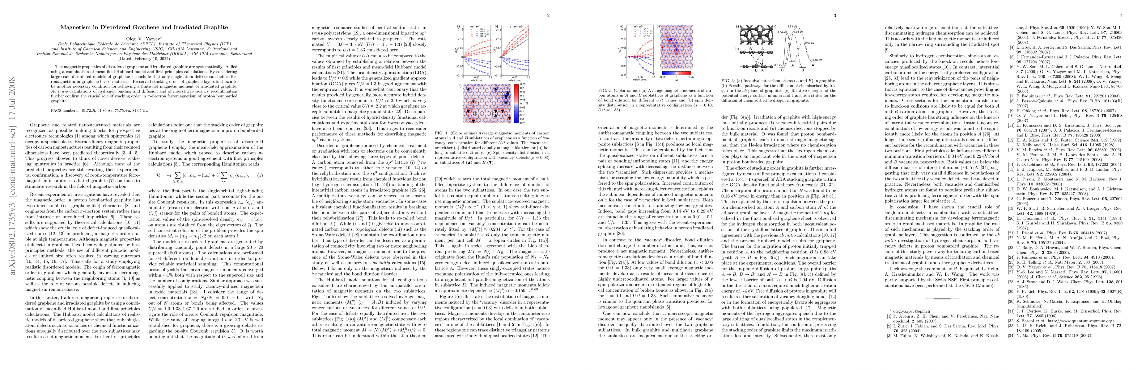 This study explores the magnetic behavior in disordered graphene and irradiated graphite, revealing that single-atom defects induce ferromagnetism in graphene and that the preserved stacking order of layers is essential for a net magnetic moment in irradiated graphite, confirmed by ab initio calculations.