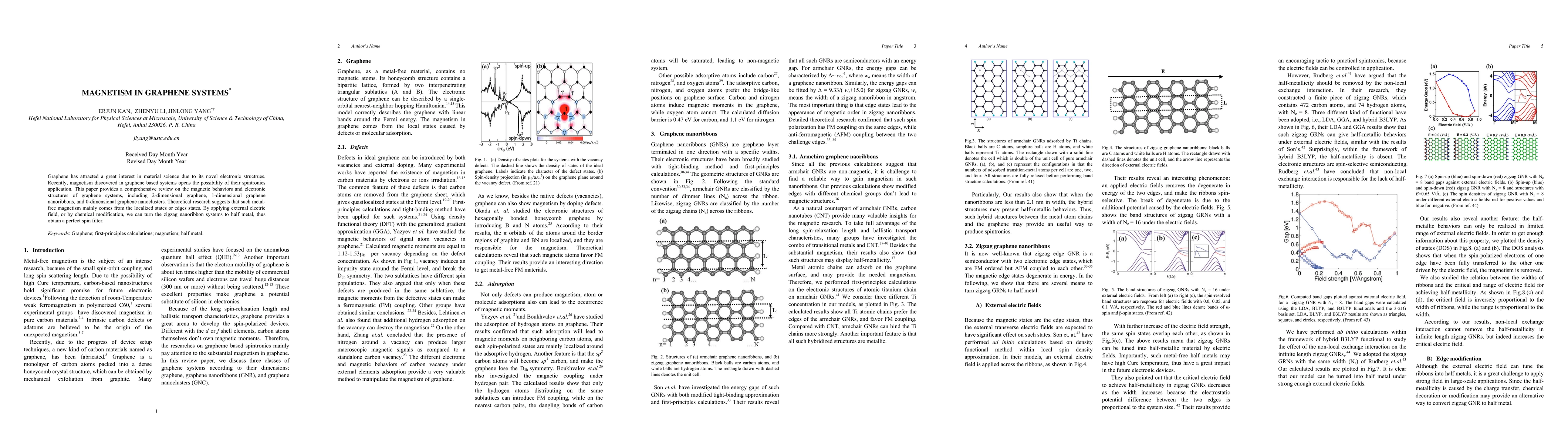The paper presents a comprehensive review and theoretical analysis of magnetism in graphene systems, highlighting the role of localized and edge states, and demonstrating how external electric fields, edge modification, and chemical doping can be used to tune magnetic behaviors and electronic structures.